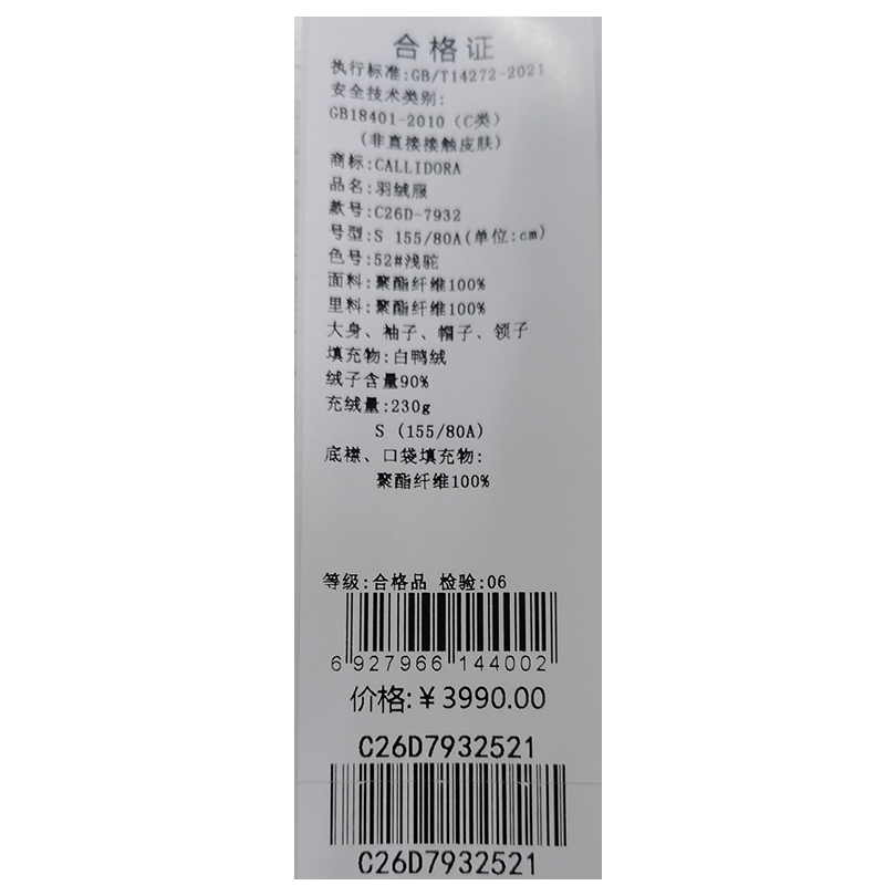 卡莉朵拉羽绒服C26D7932