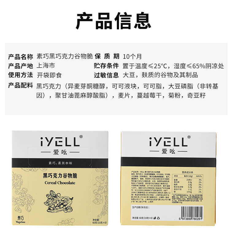 iYELL爱吆素巧巧克力组合装健康代餐零食
