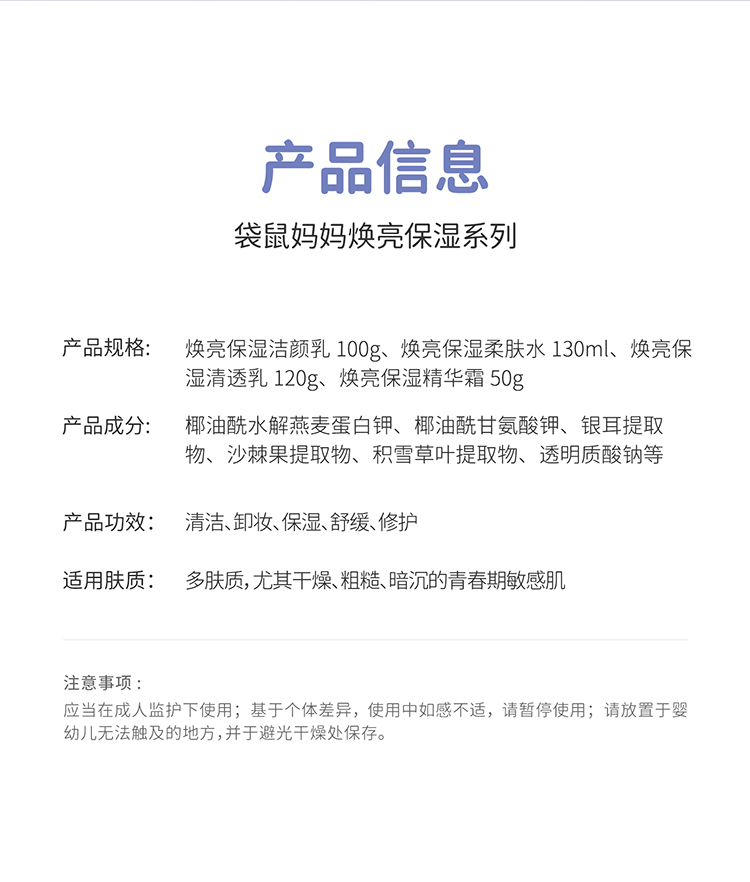 【青少年焕亮4件套】积雪草修护 敏感肌适用 秋冬养白皮 焕亮保湿4件套