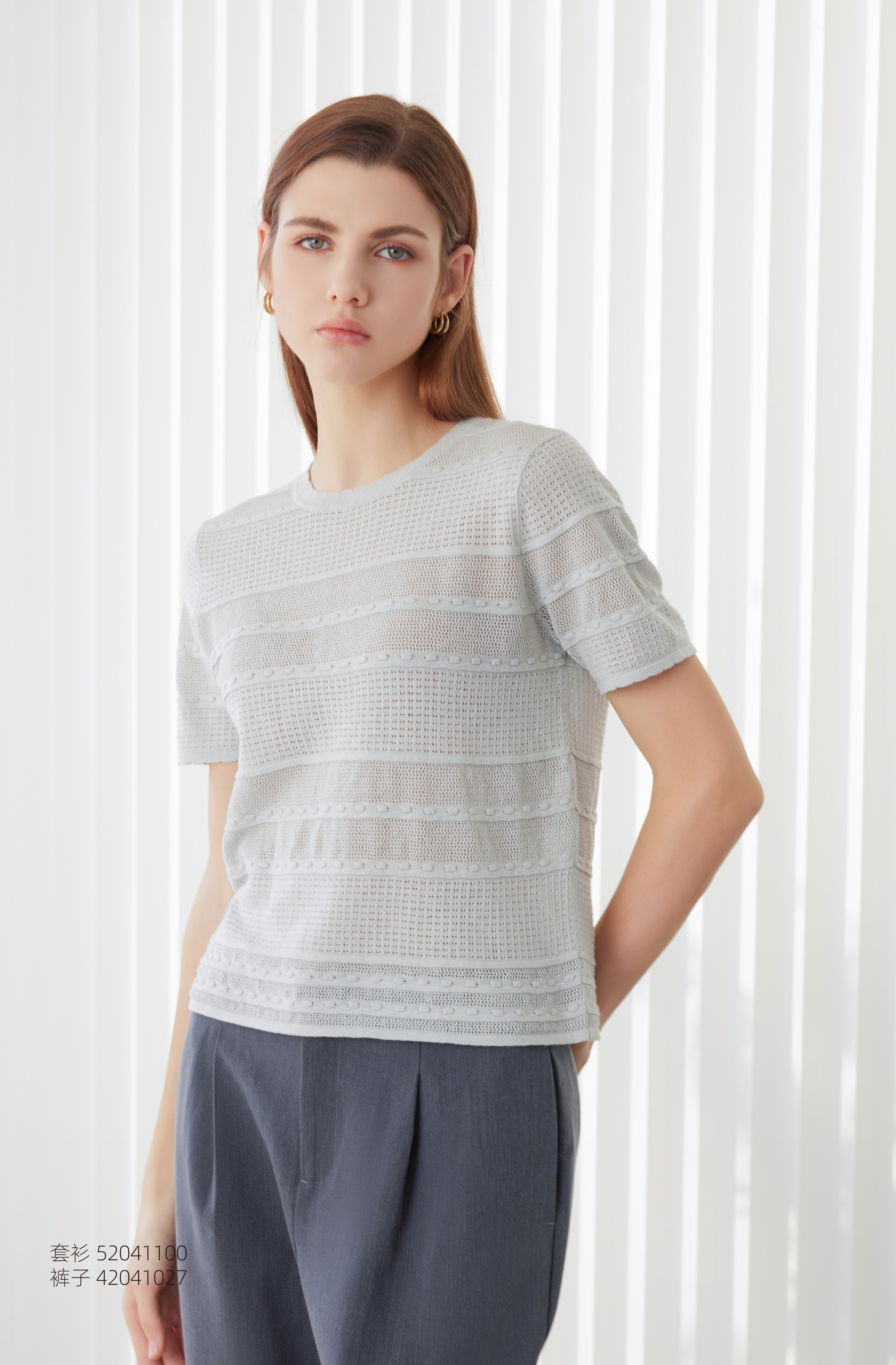 【棉麻镂空短袖针织衫】24年春夏新品圆领套头针织衫时尚镂空透气针织上衣