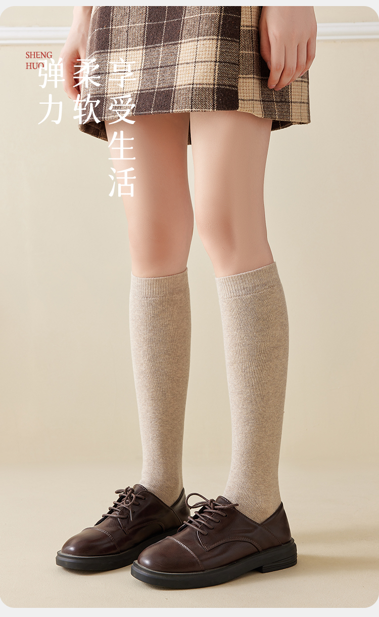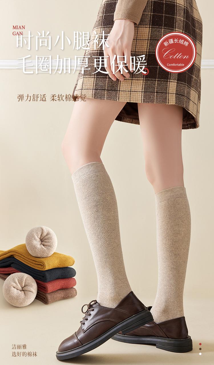 洁丽雅2双装长筒袜子女毛圈加厚保暖长筒小腿女袜高弹亲肤袜子女