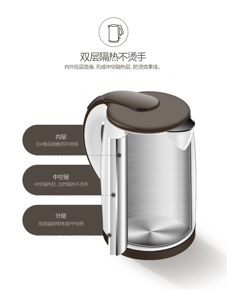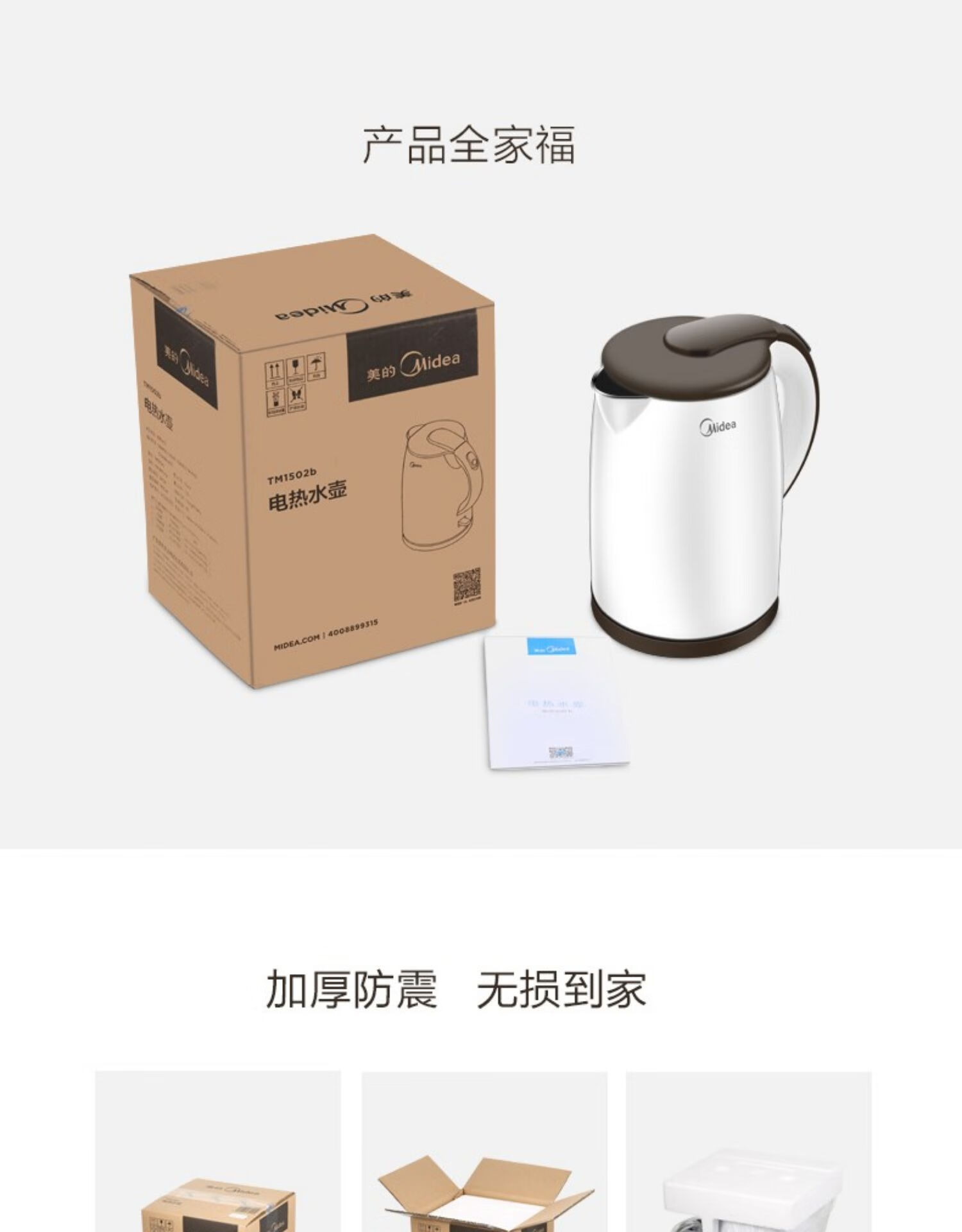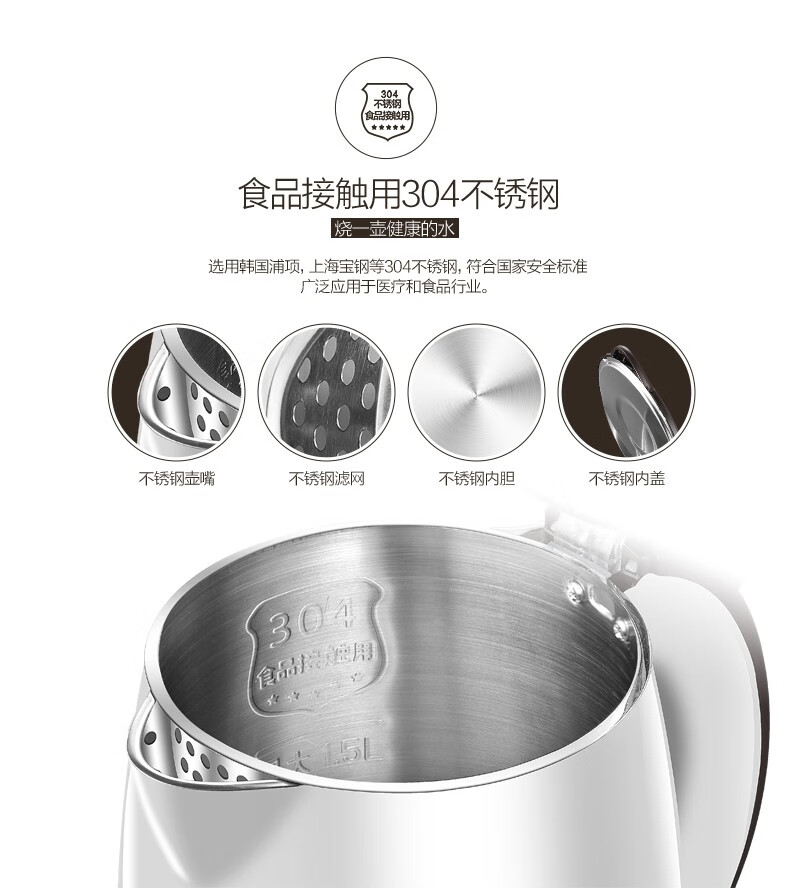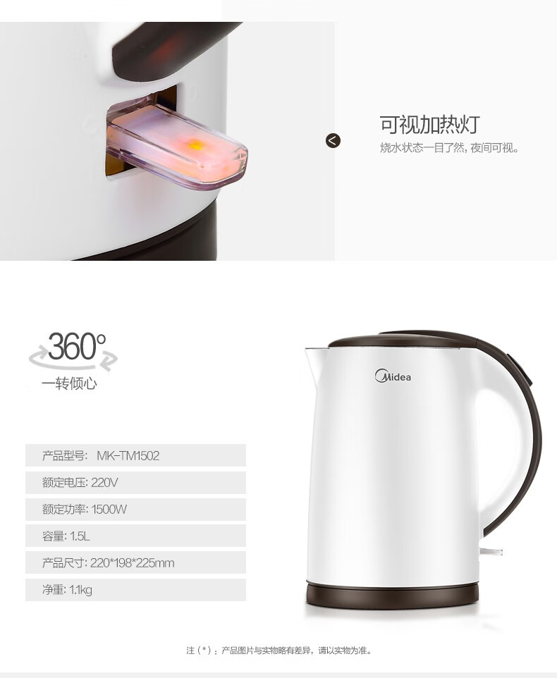 美的304不锈钢烧水壶MK-TM1502b 1.5L