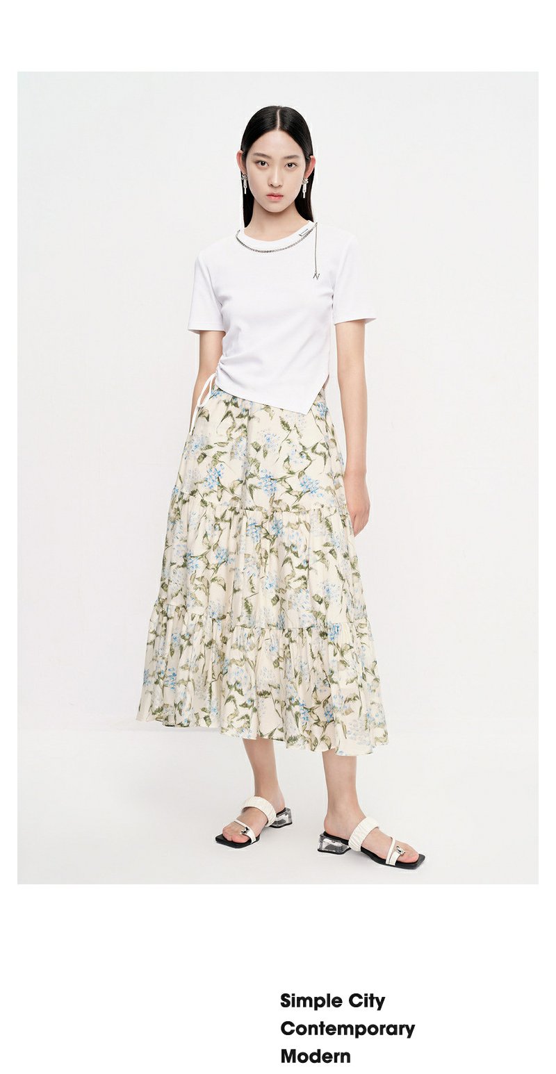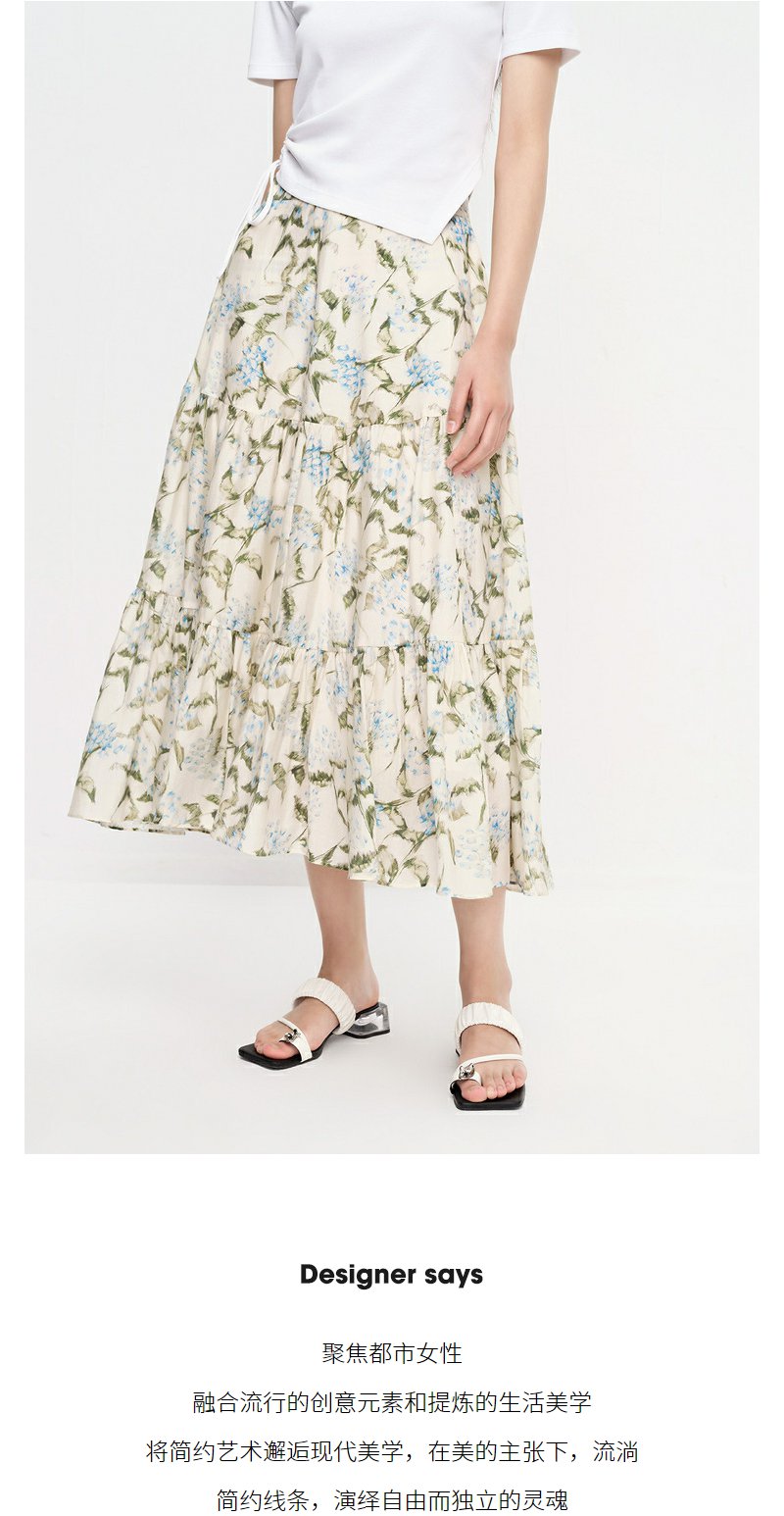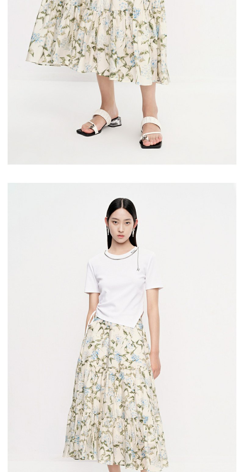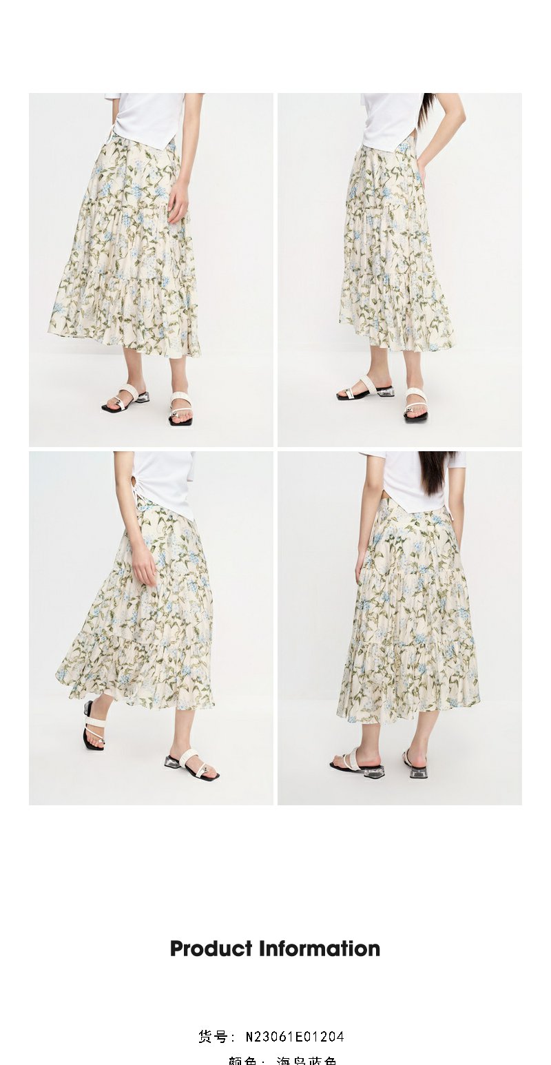 NEELLY纳俪商场同款夏季天丝半身裙女中长款可爱蛋糕裙显瘦时尚N23061E01204