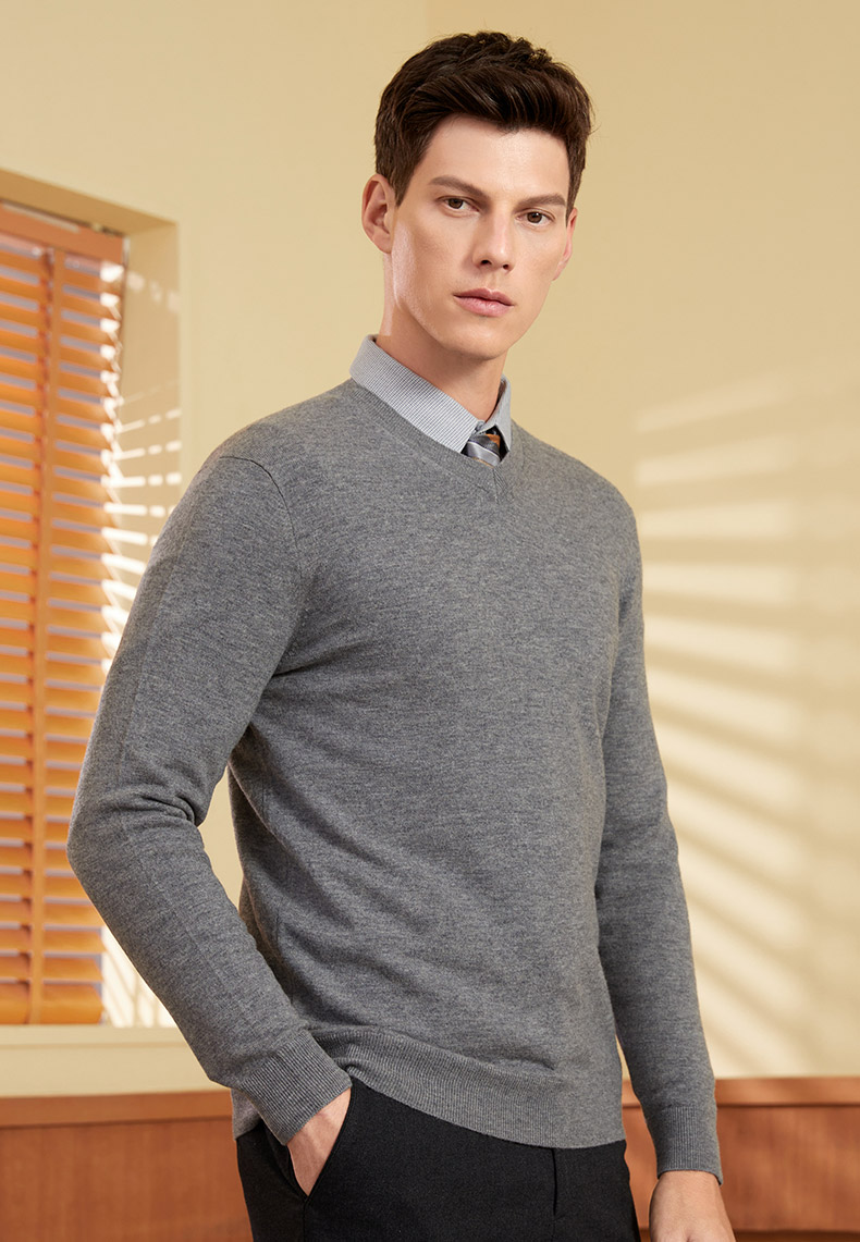 【100%羊毛】MD名盾羊毛衫男V领纯羊毛秋冬商务休闲套头针织毛衫