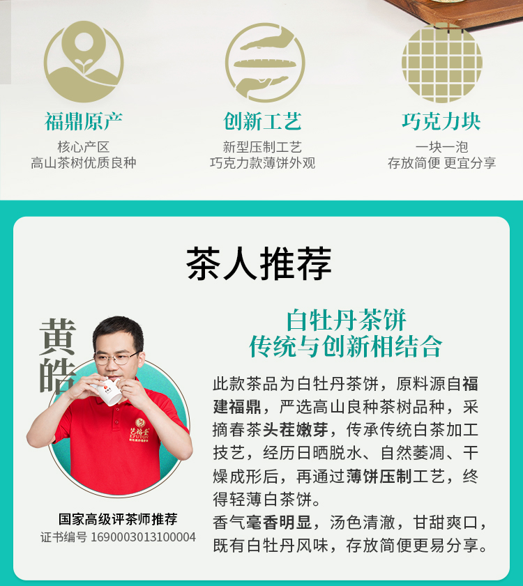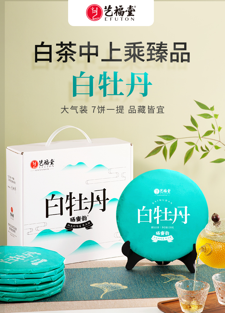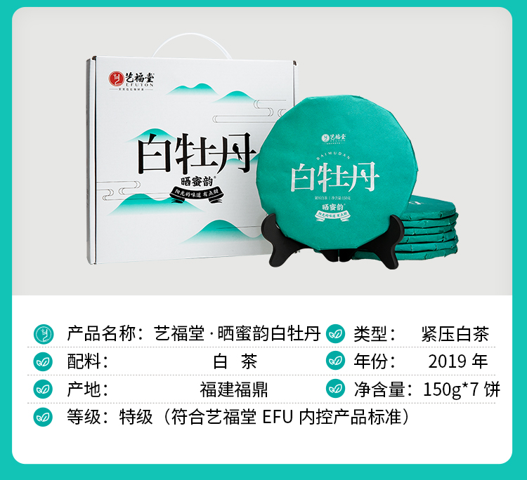艺福堂晒蜜韵白牡丹饼150g/饼*7