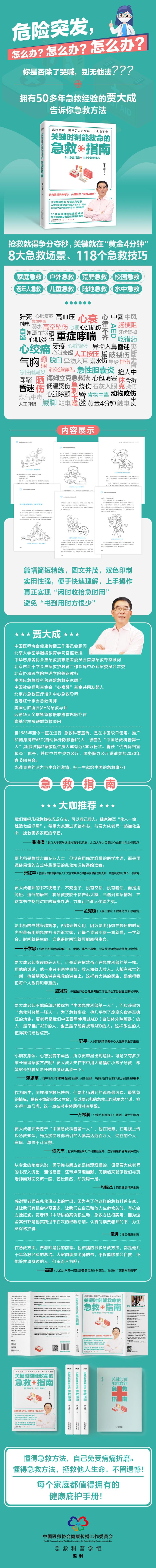 被誉为“中国急救科普人”的贾大成医生,将自己50多年的专业急救知识及丰富经验汇总成书,通过8大急救场景、118个急救技巧,手把手教你如何在突发危急情况之下进行急救。全书从家庭急救到户外急救,从荒野急救到校园急救,从水中急救到陆地急救,从儿童急救到老人急救,涉及猝死、休克、中风、烧伤、烫伤、触电、中毒、咬伤、溺水、气道阻塞等一系列意外的应对急救方法。