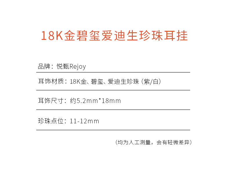 【挚友限定】耳扣款-18K金碧玺爱迪生珍珠耳挂 11-12mm(白色/紫色)