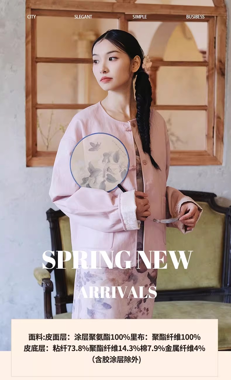 【门店同款】ENJOY春季云敛-春光推盏中式皮外套 161900229