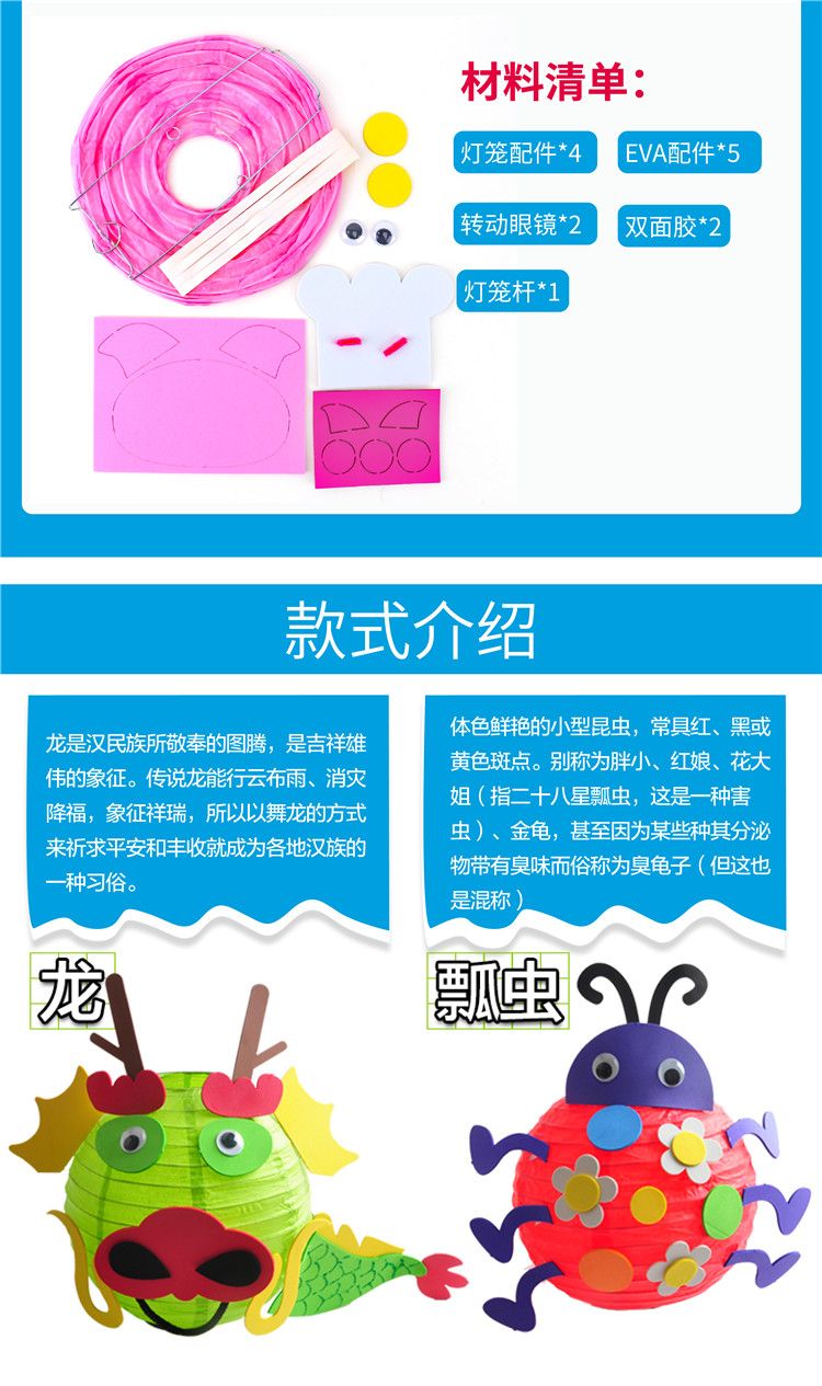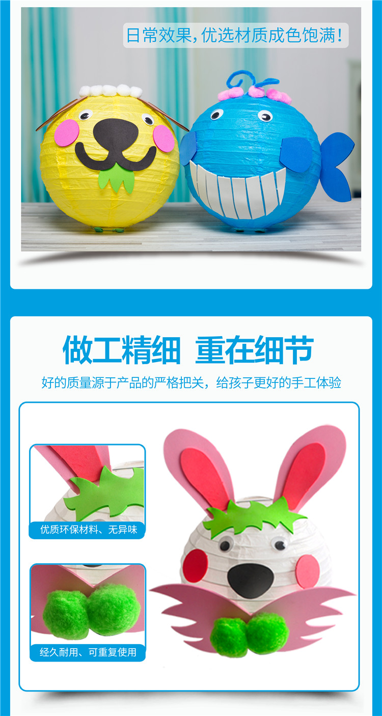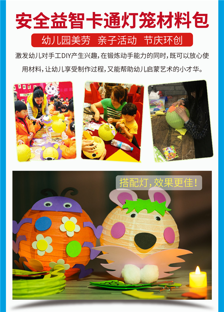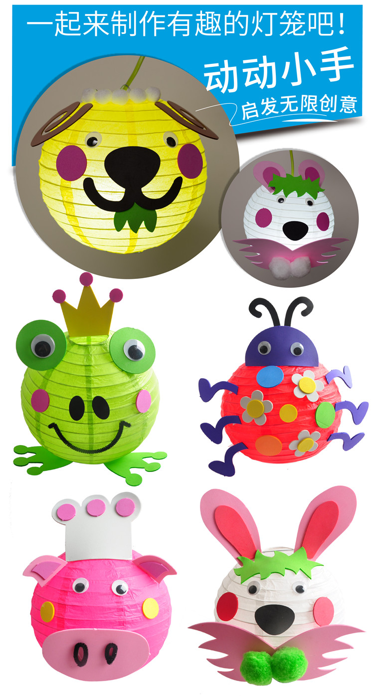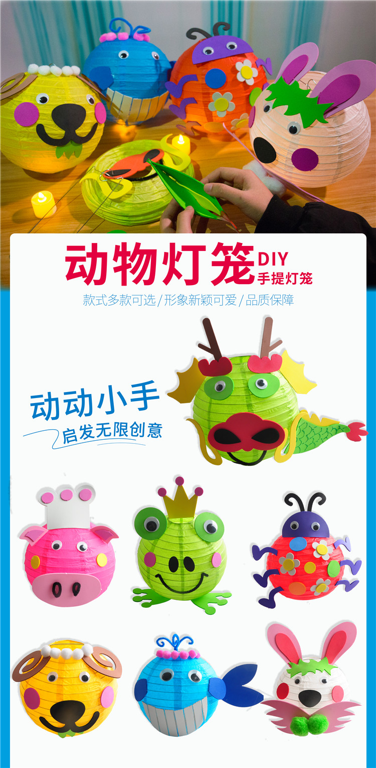 8寸动物灯笼 中秋节幼儿园DIY粘贴灯笼材料包