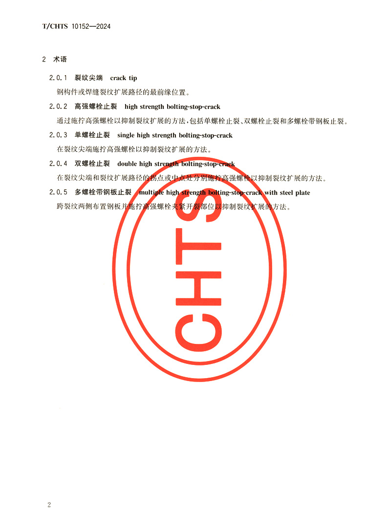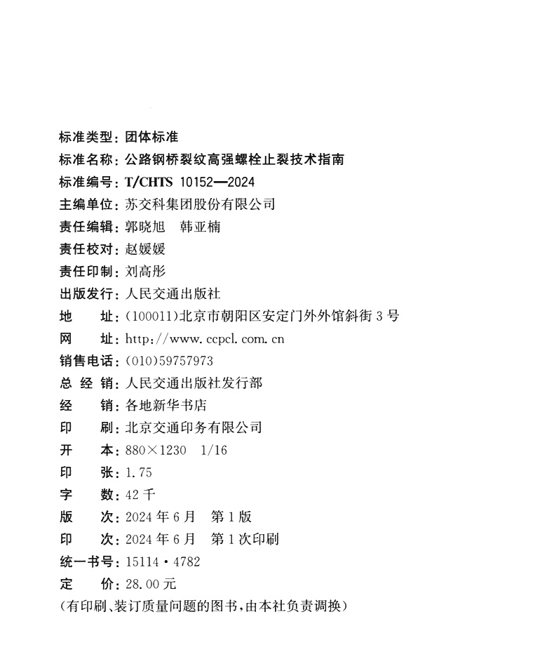 书名:公路钢桥裂纹高强螺栓止裂技术指南(T/CHTS 10152—2024)