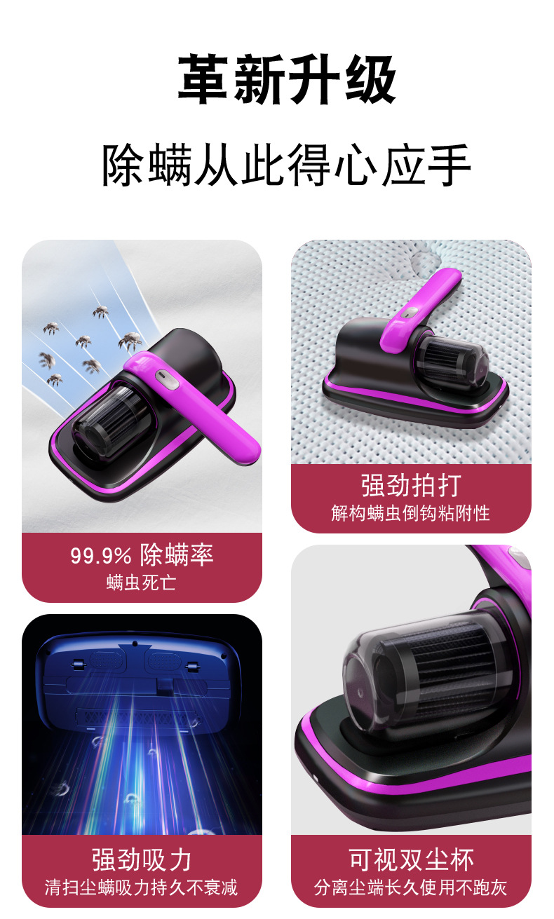 【无线充电!随拿随用】无线家用除螨仪床上吸尘器吸紫外线杀菌机除螨虫沙发床铺通用。ry 商品图3