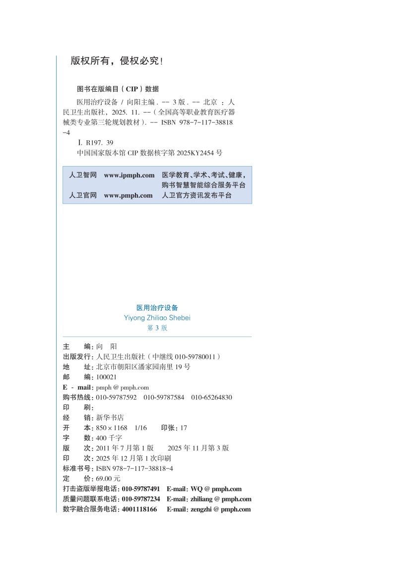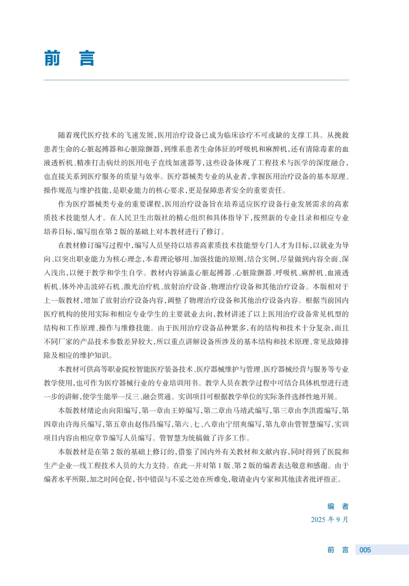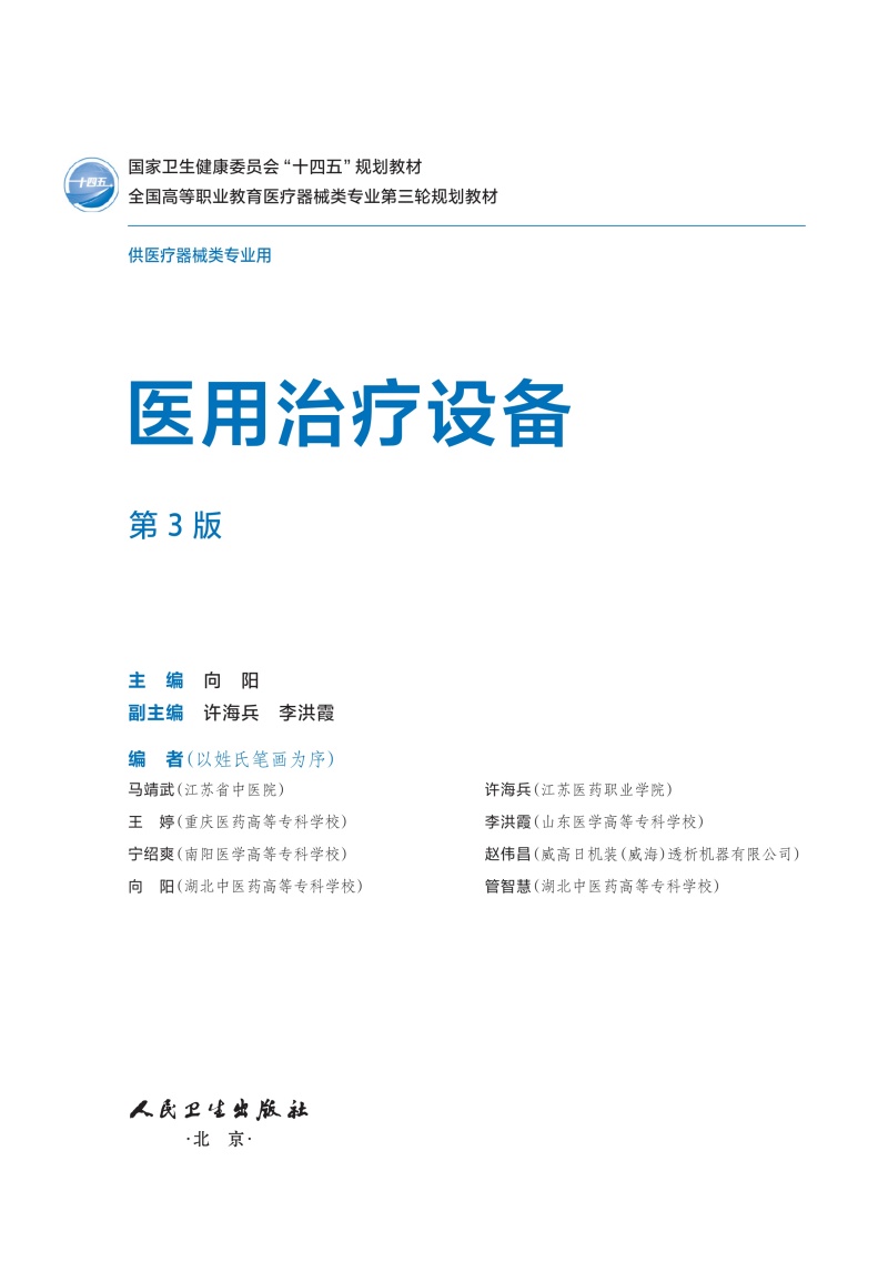 医用治疗设备 第3三版 十四五规划教材全国高等职业教育医疗器械类专业第三轮规划教材 向阳 供医疗器械类专业用人民卫生出版社