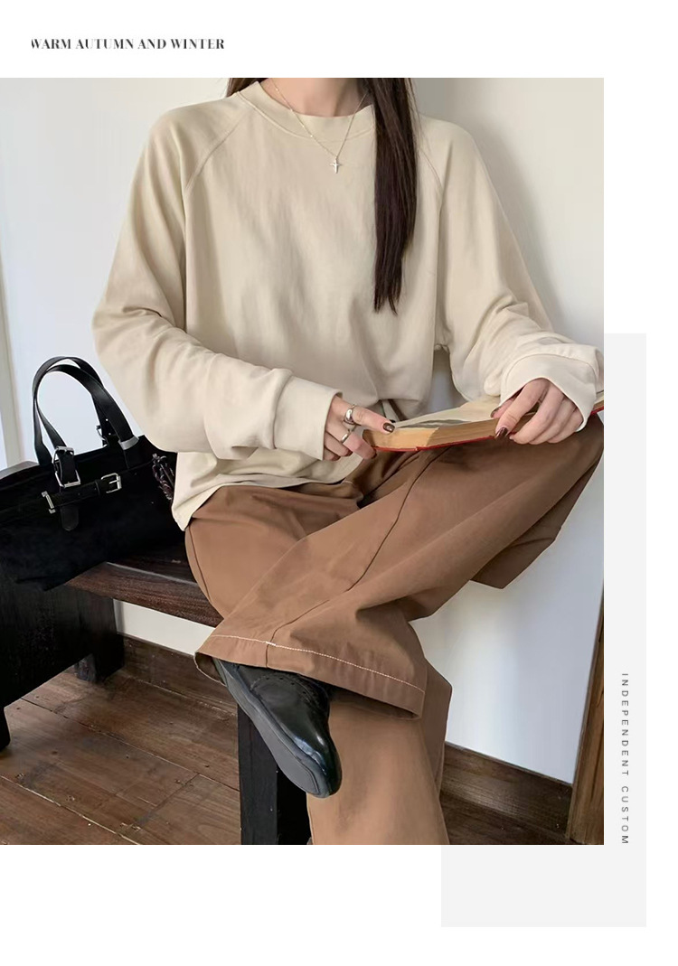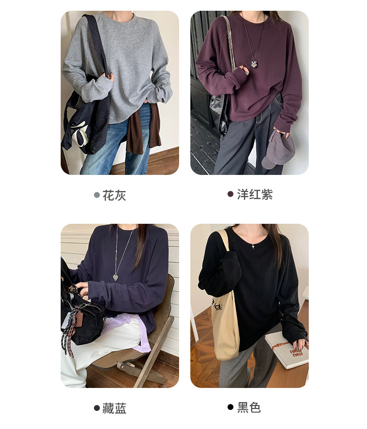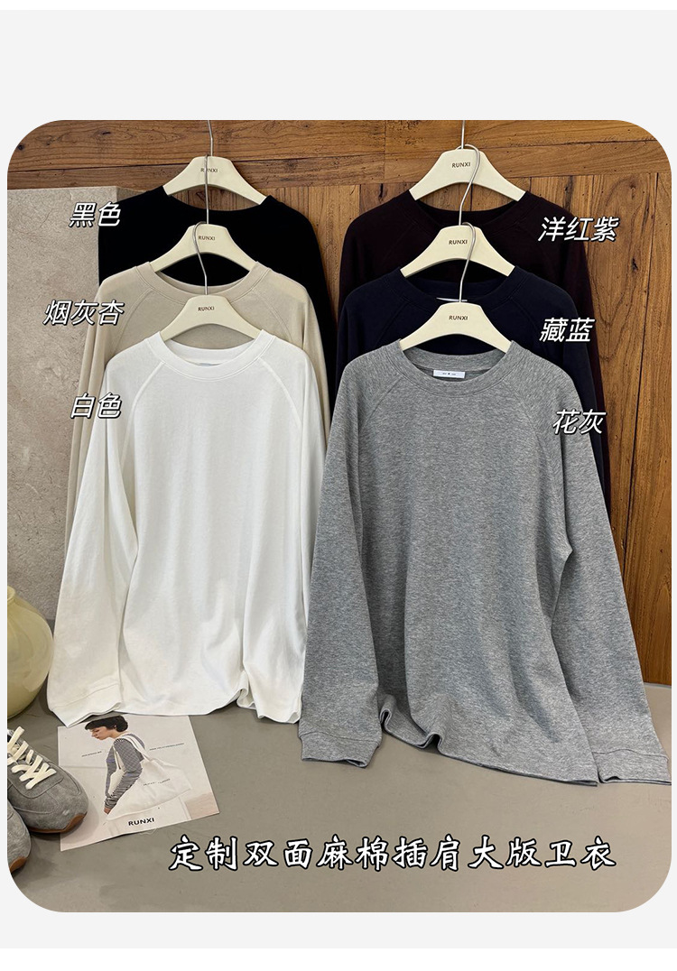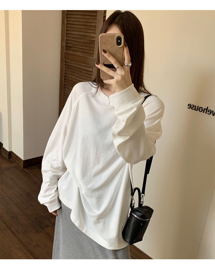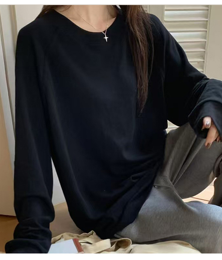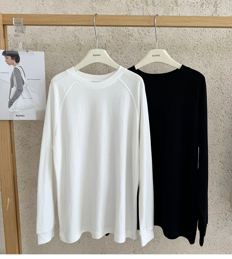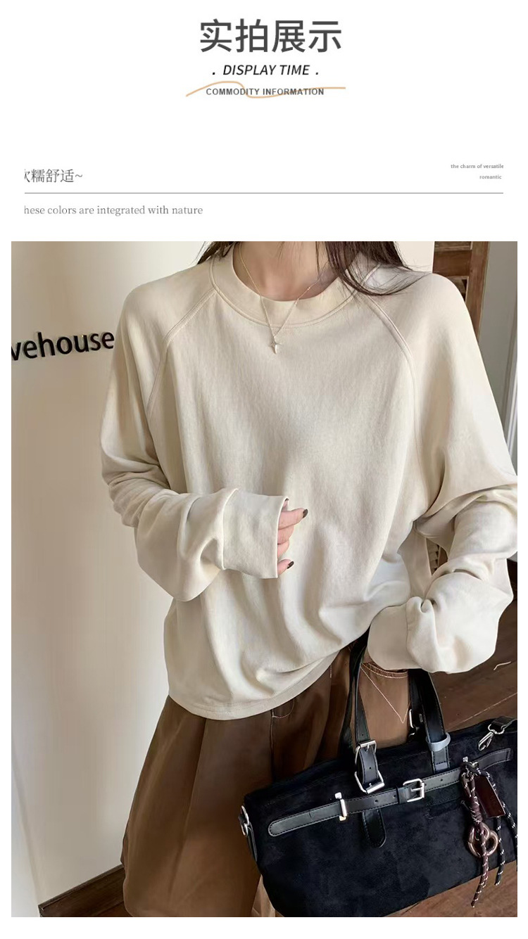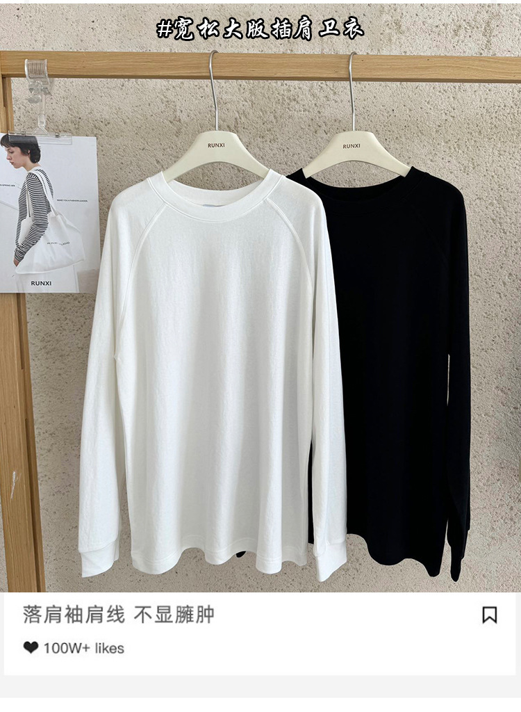 韩版2025秋季新款纯棉圆领 插肩基础BF打底衫宽松ins潮风长袖百搭T恤