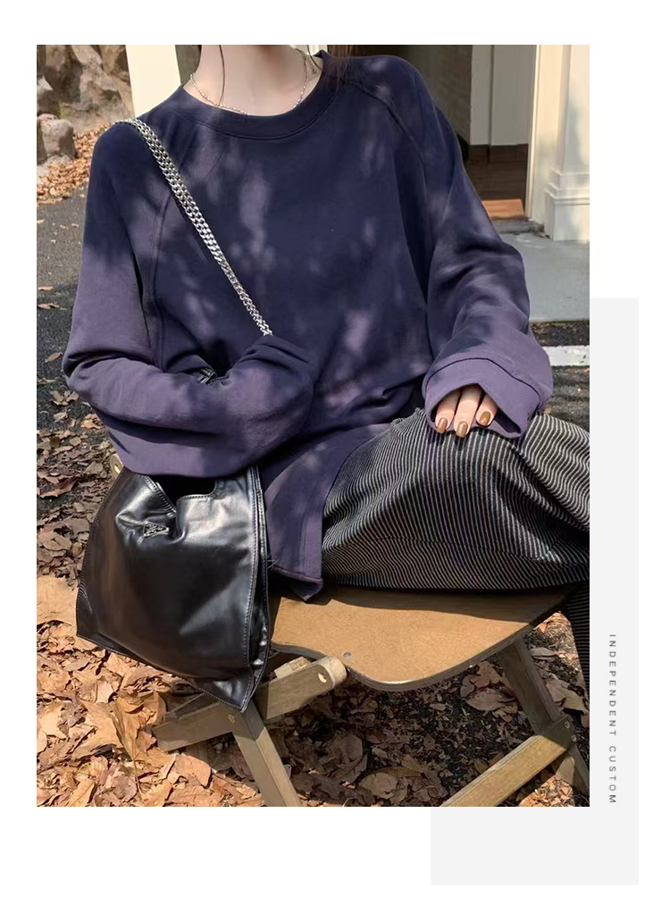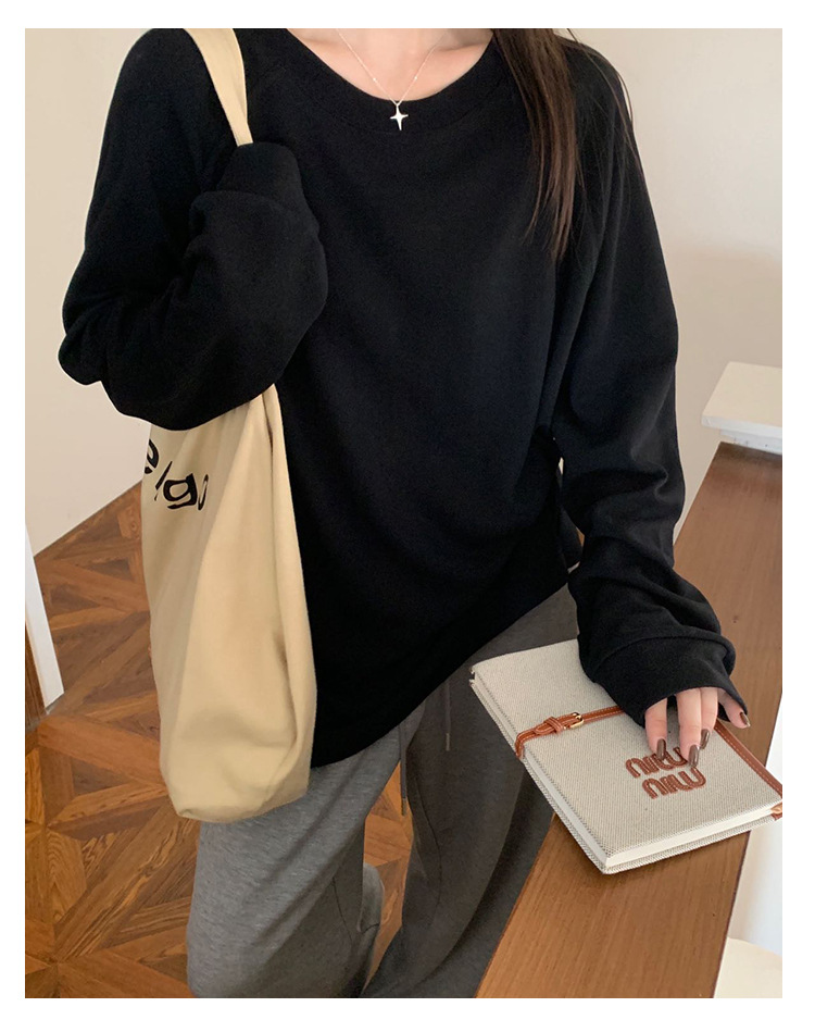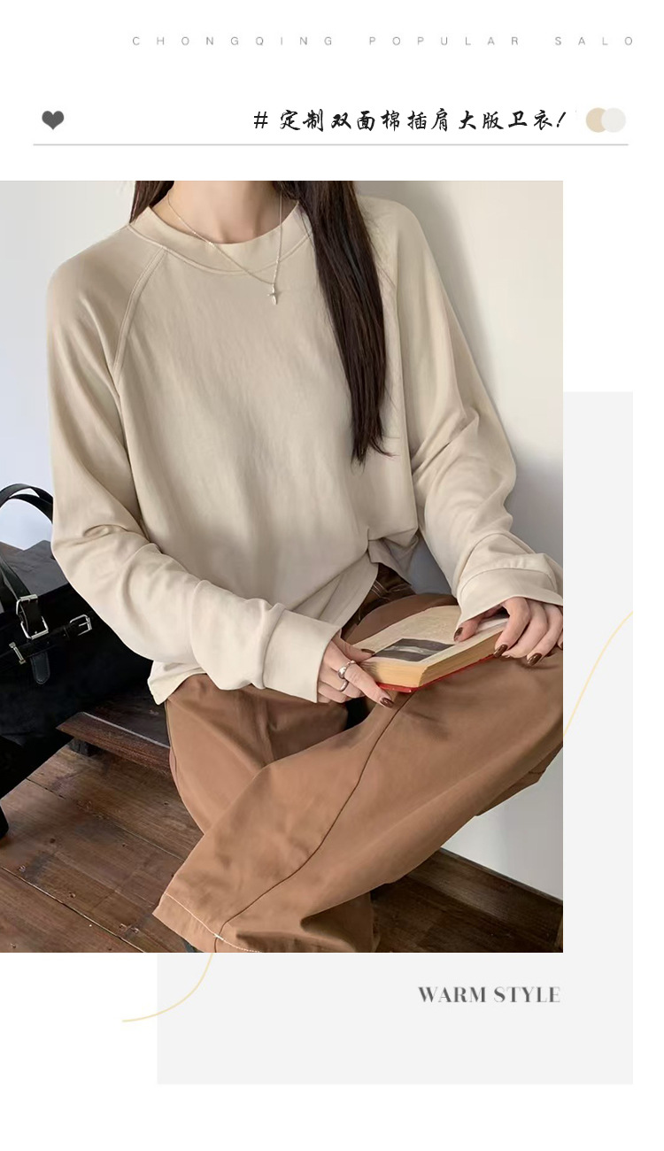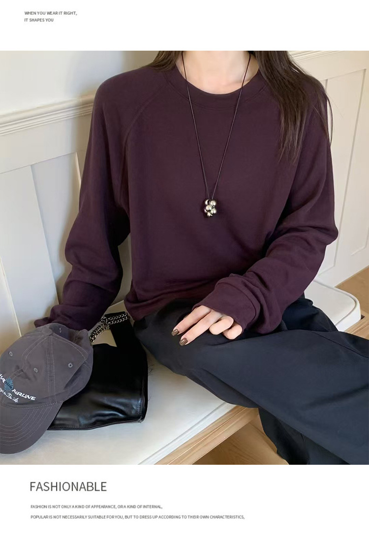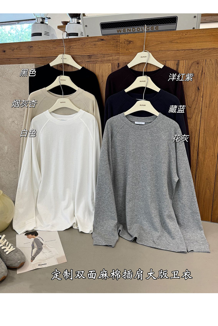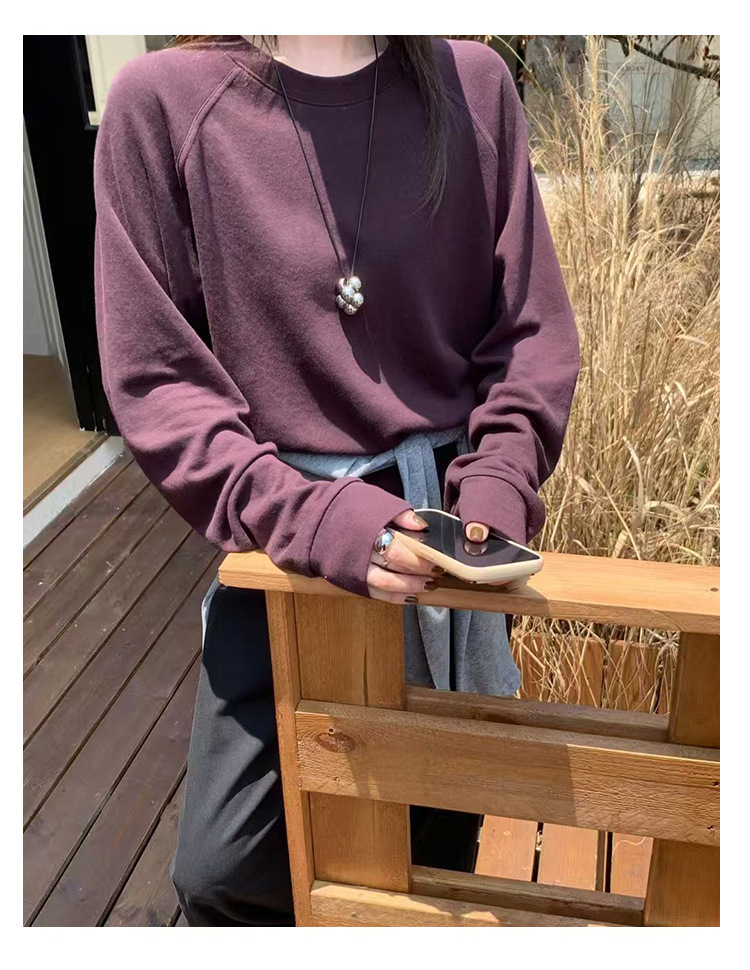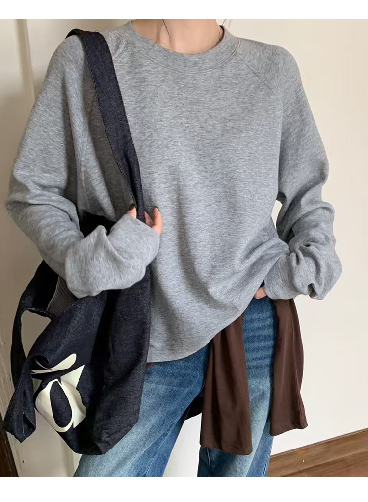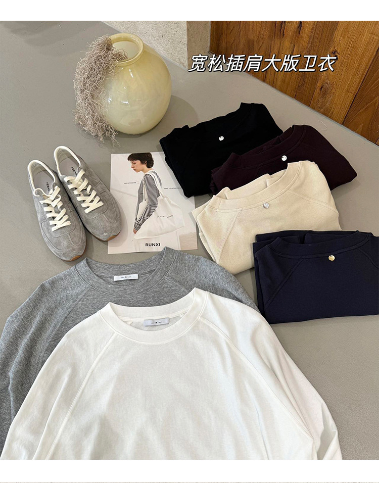 韩版2025秋季新款纯棉圆领 插肩基础BF打底衫宽松ins潮风长袖百搭T恤