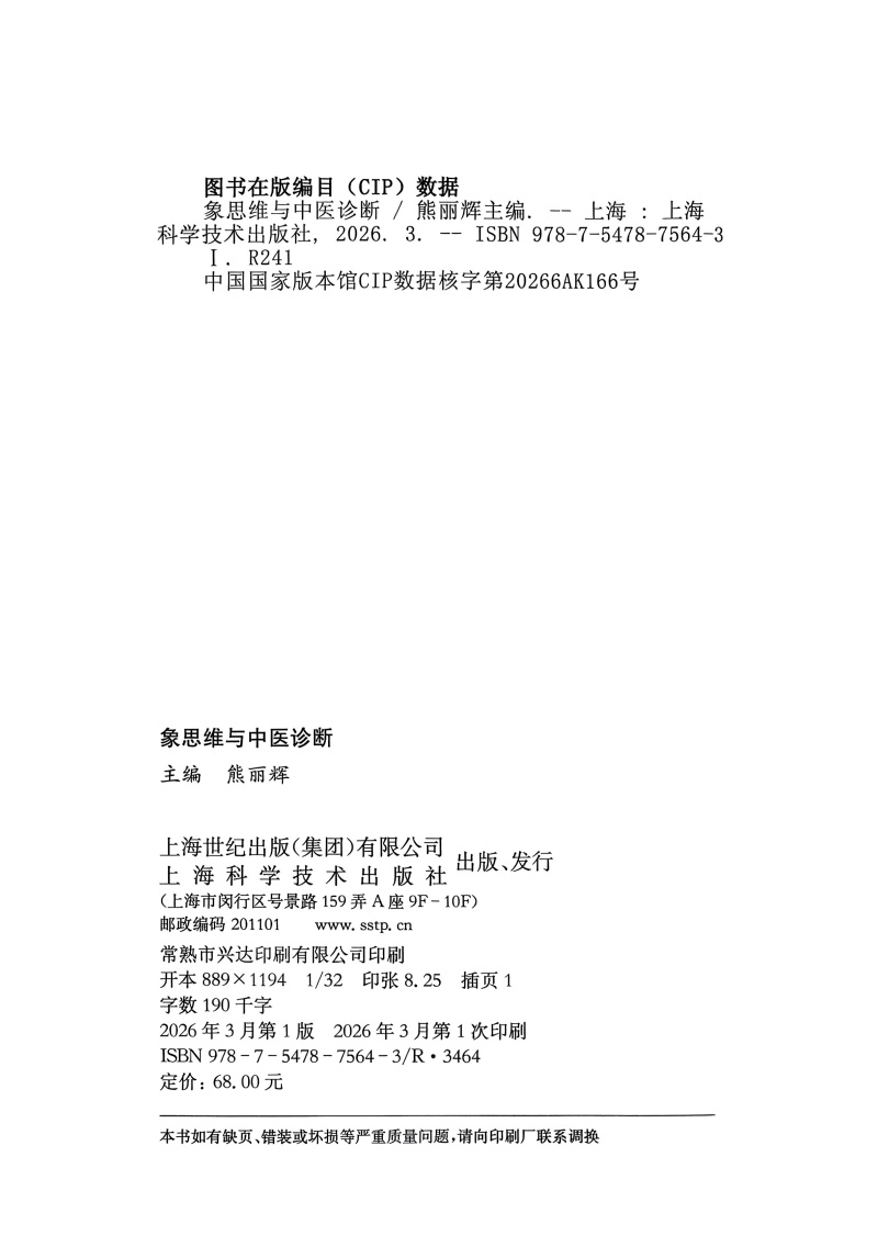 象四维与中医诊断 熊丽辉 主编 适用于中医学类各专业本专科学生、研究生、临床医生及中医爱好者使用 上海科学技术出版社