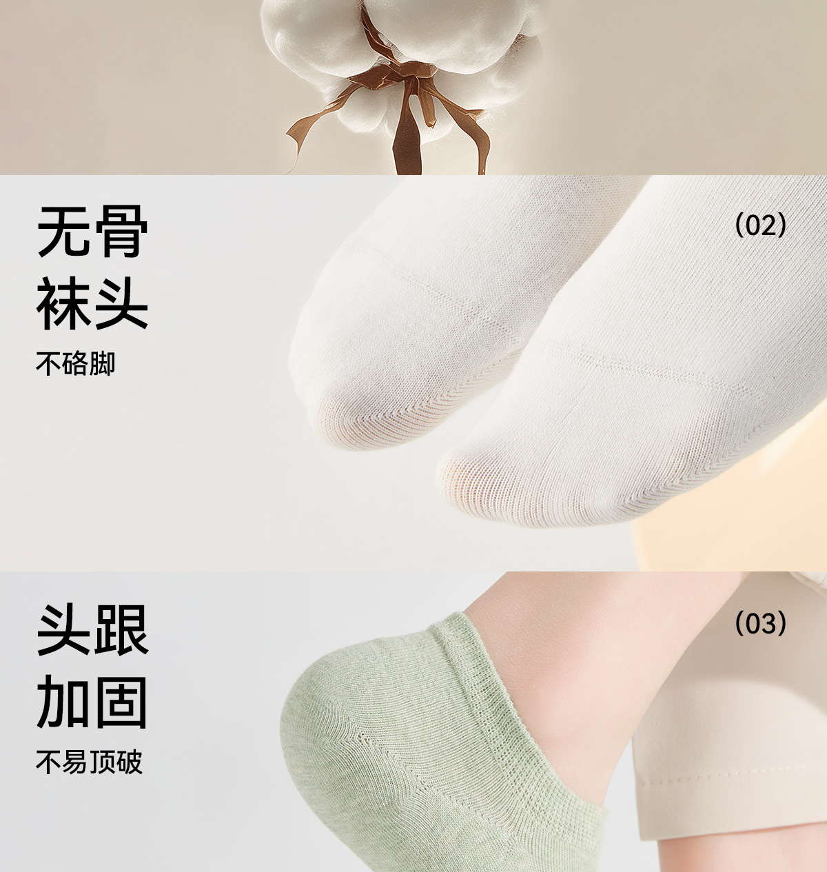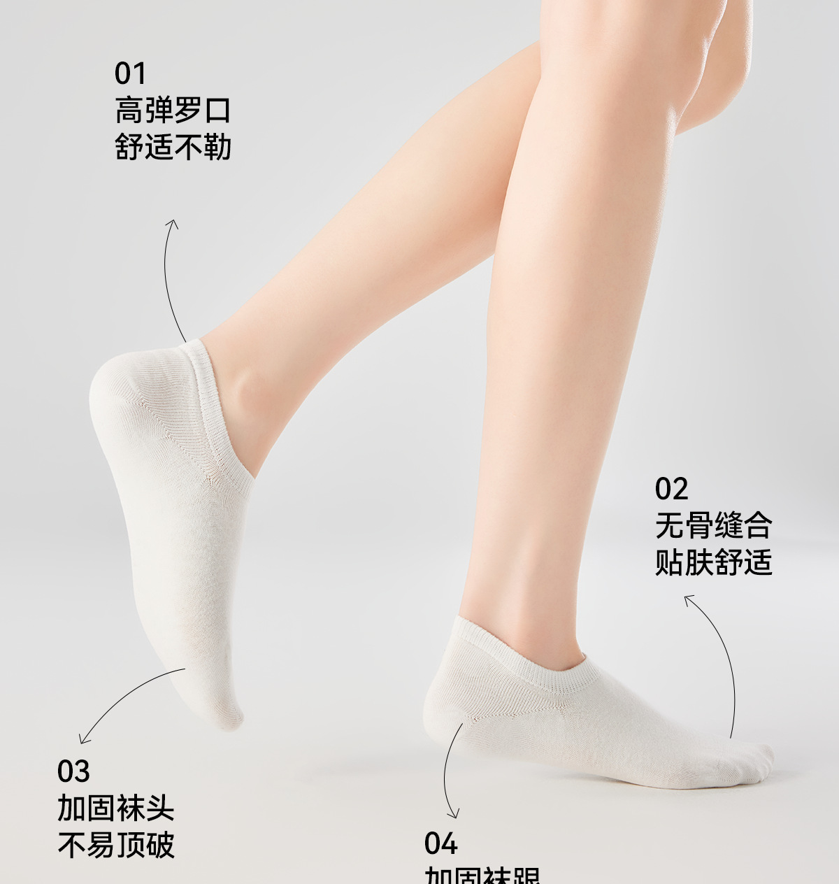 【醒粉福利19.9元4双】春夏女款新疆纯棉7A抑菌防臭吸汗短袜 防滑不掉跟无骨女士船袜