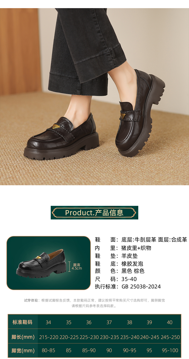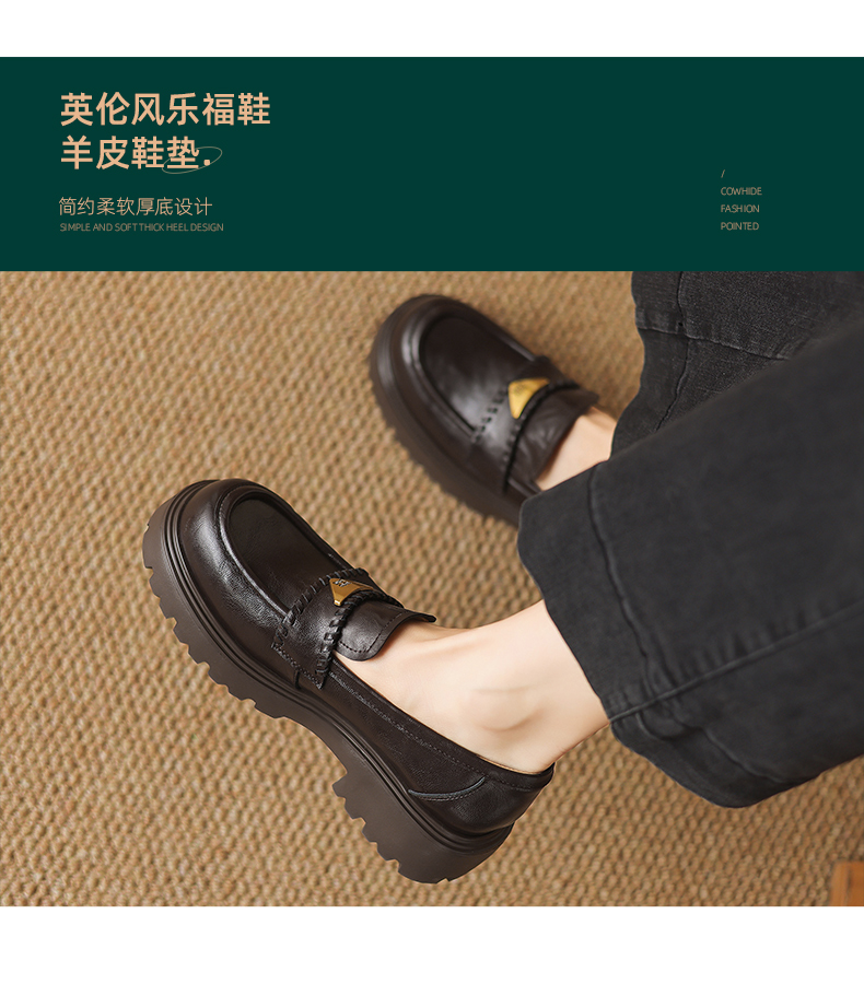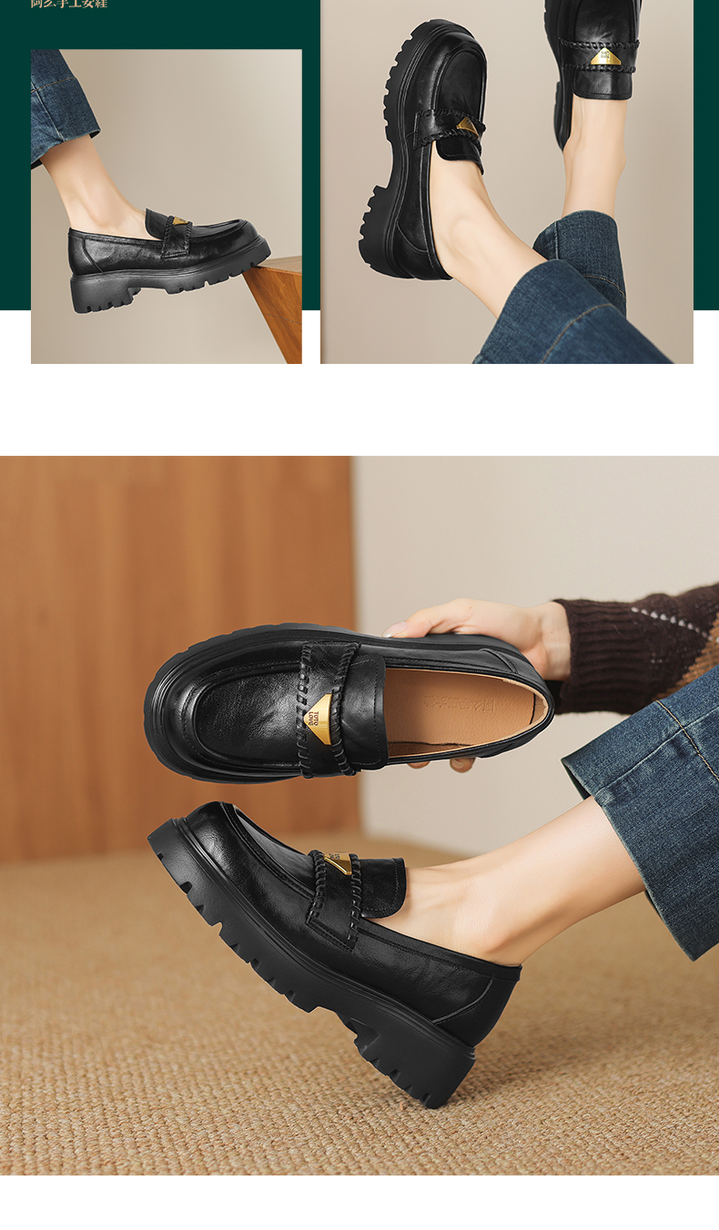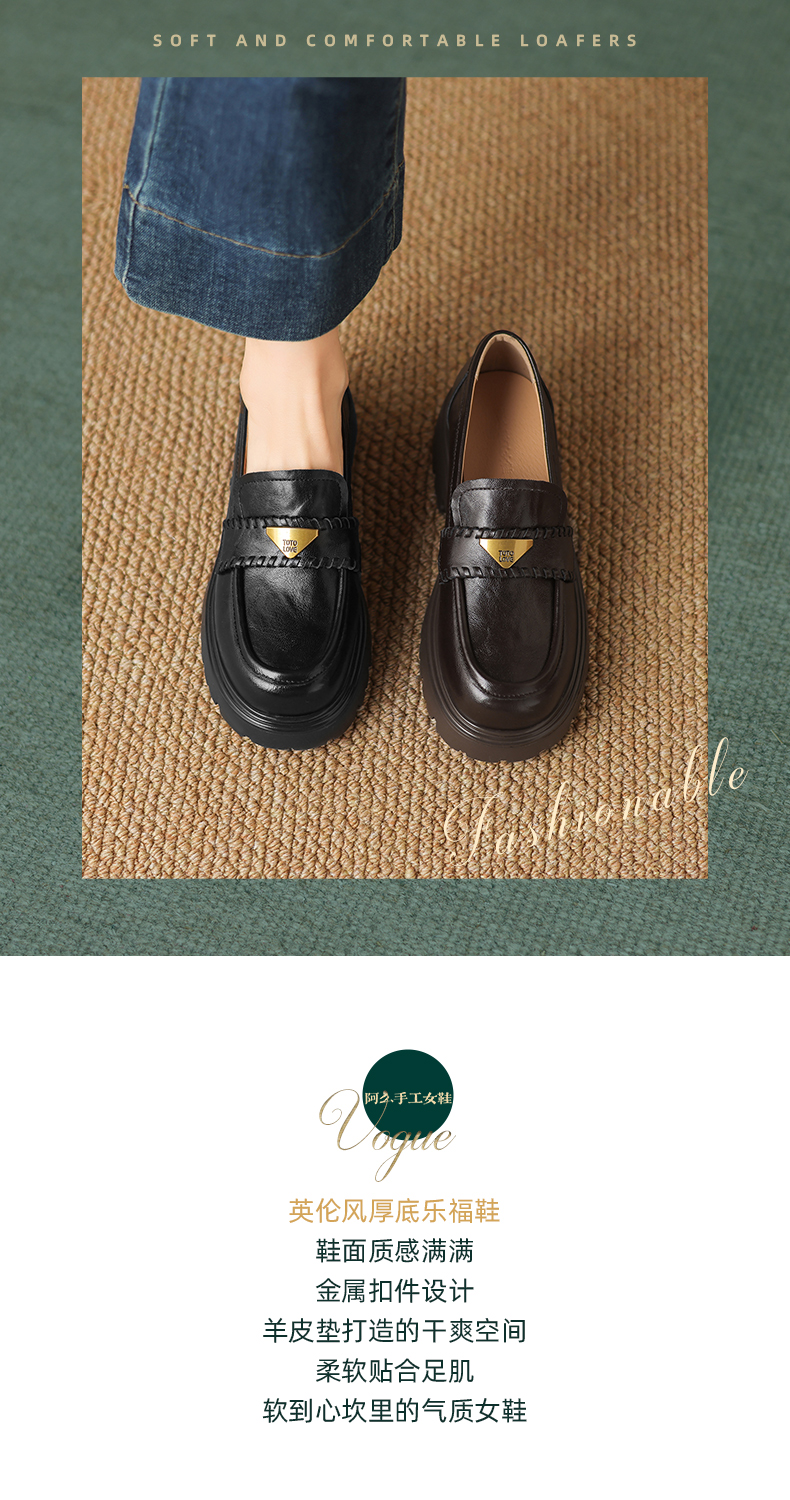 阿么手工女鞋一脚蹬厚底增高乐福鞋不累脚通勤时尚百搭单鞋4.5CM