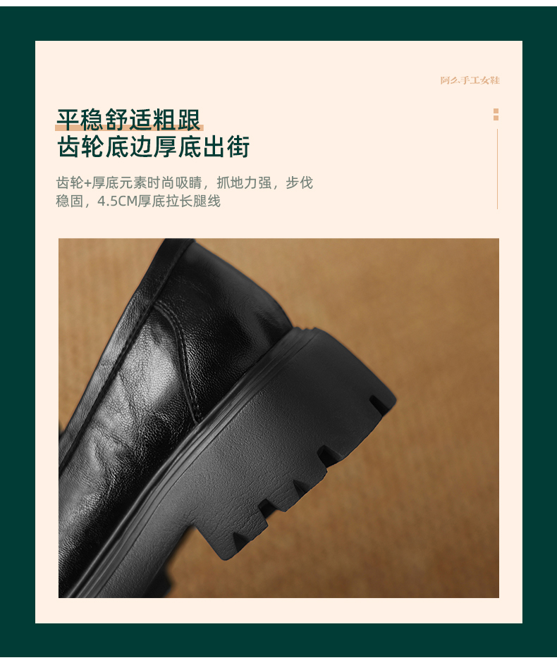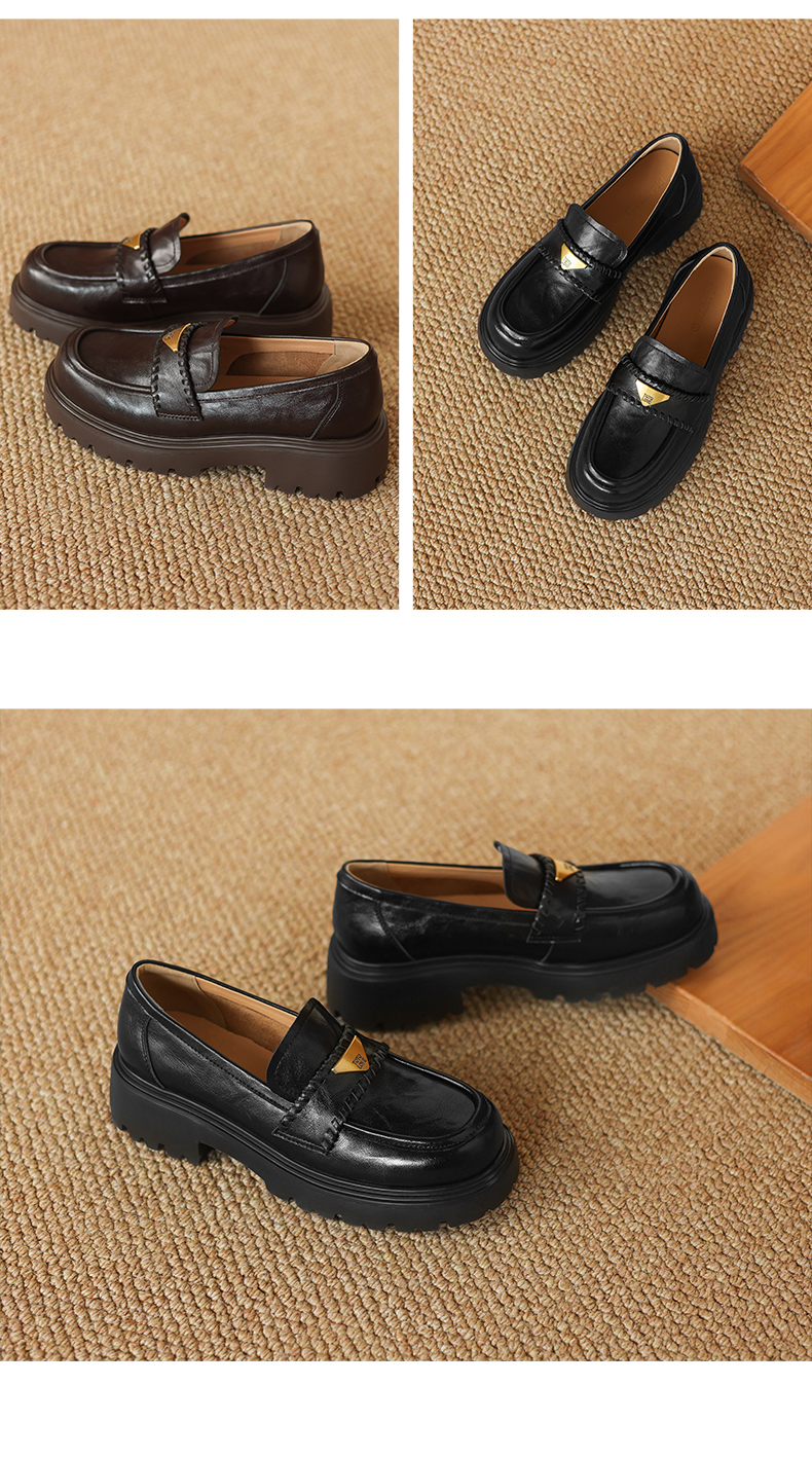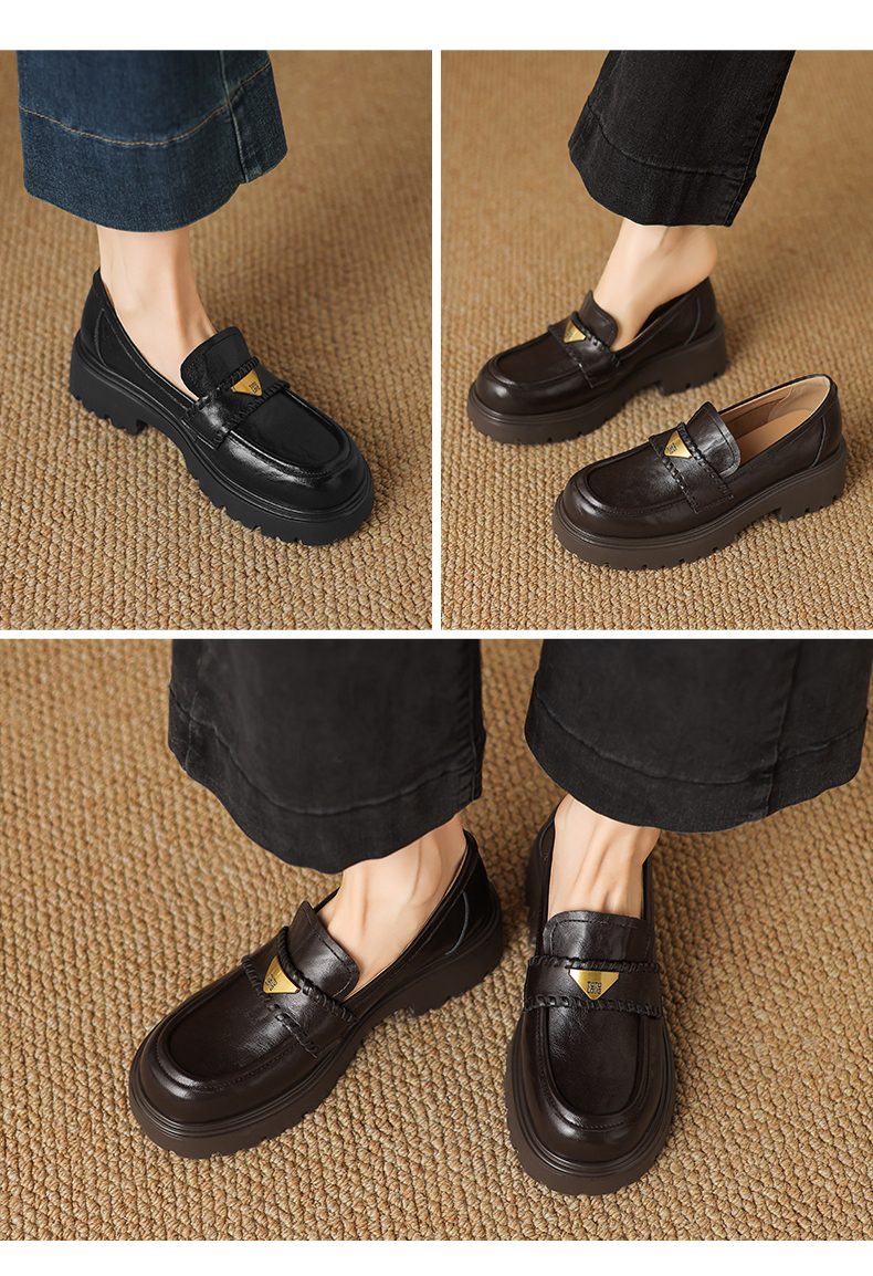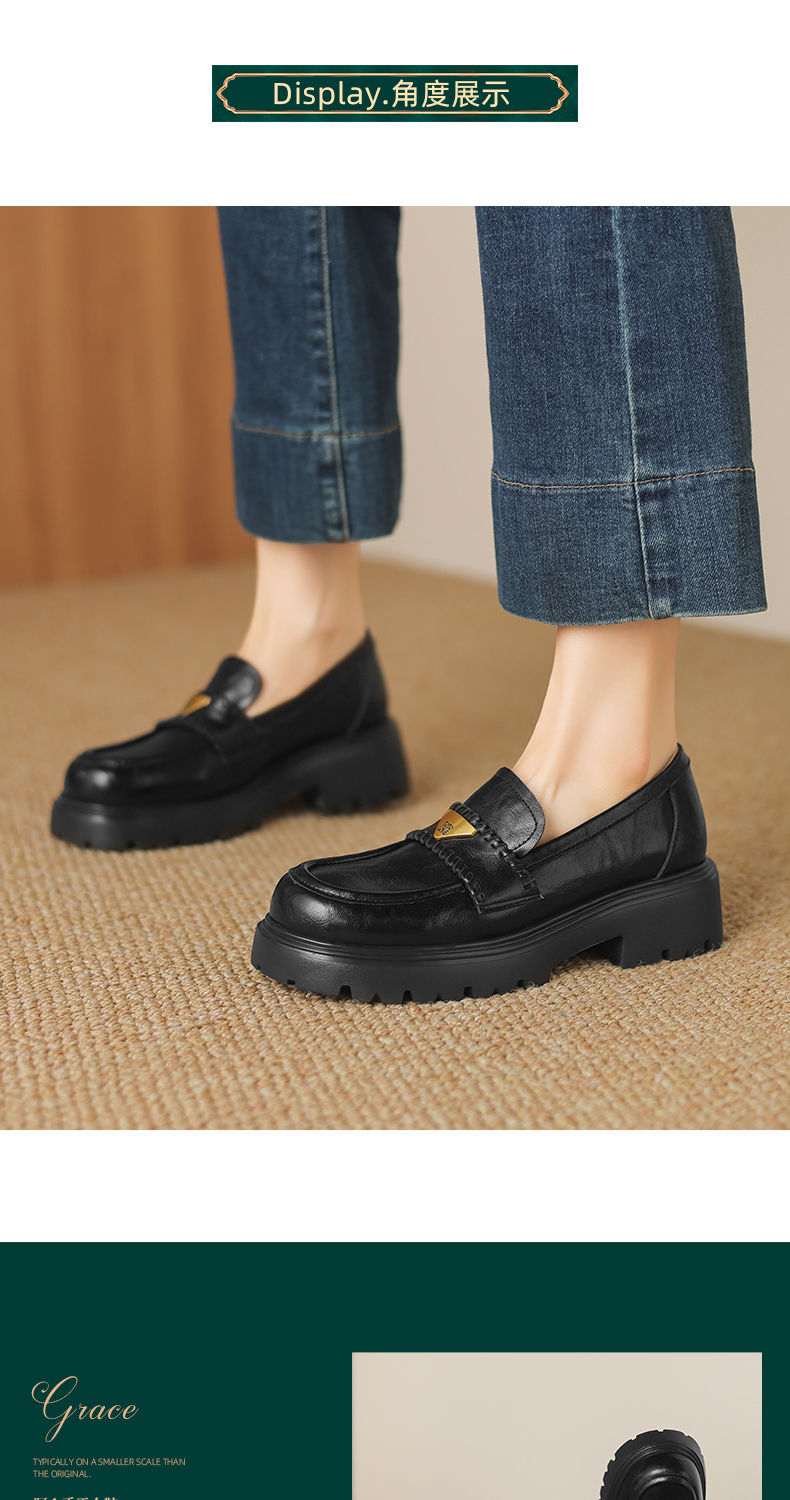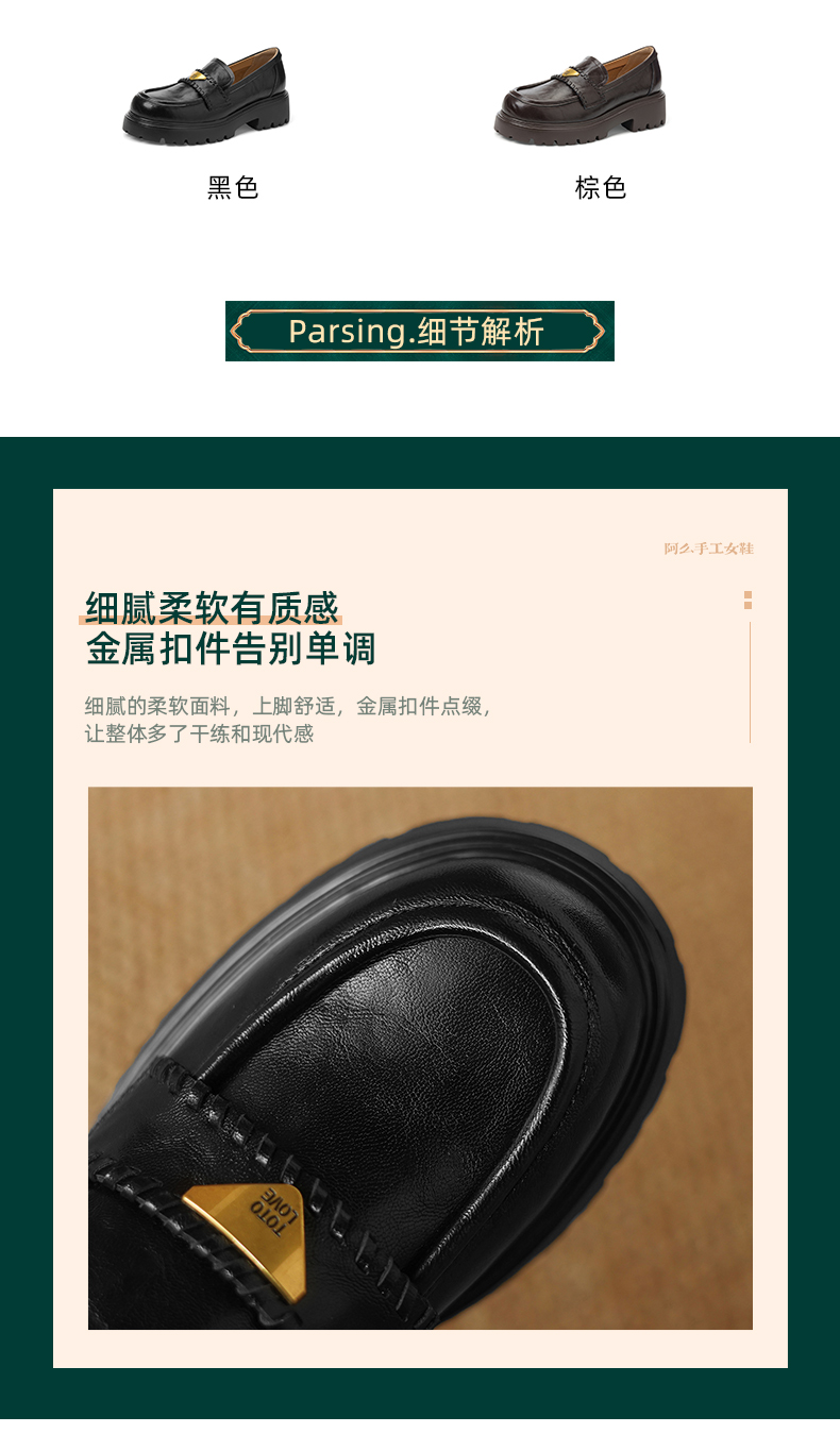 阿么手工女鞋一脚蹬厚底增高乐福鞋不累脚通勤时尚百搭单鞋4.5CM