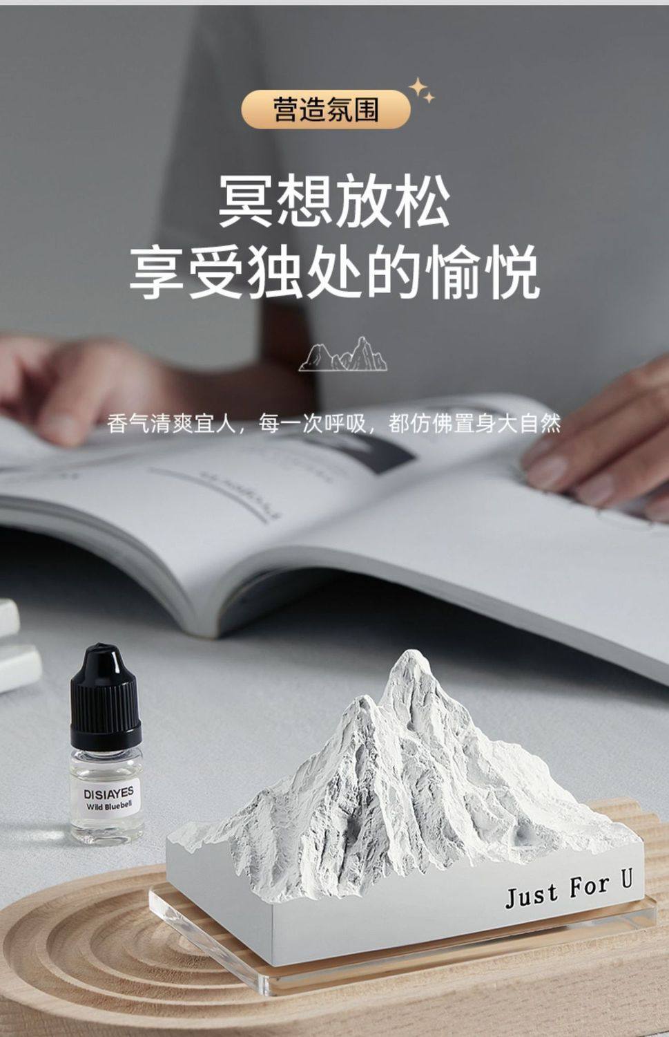 香氛无火石膏阿尔卑斯山雪山卧室香薰批发摆件扩香石室内车载家用