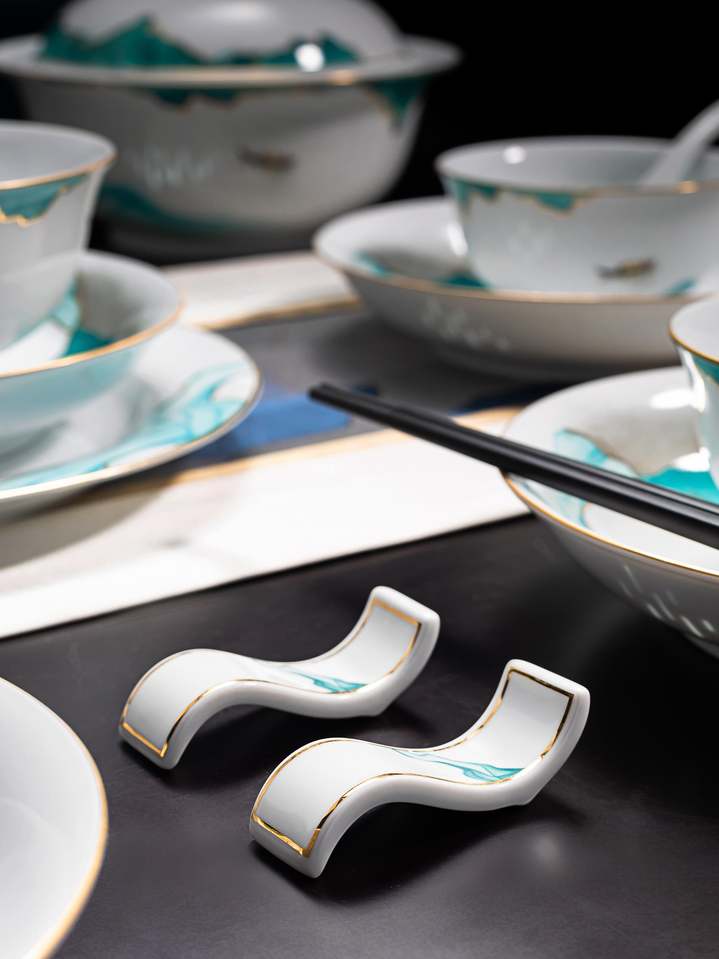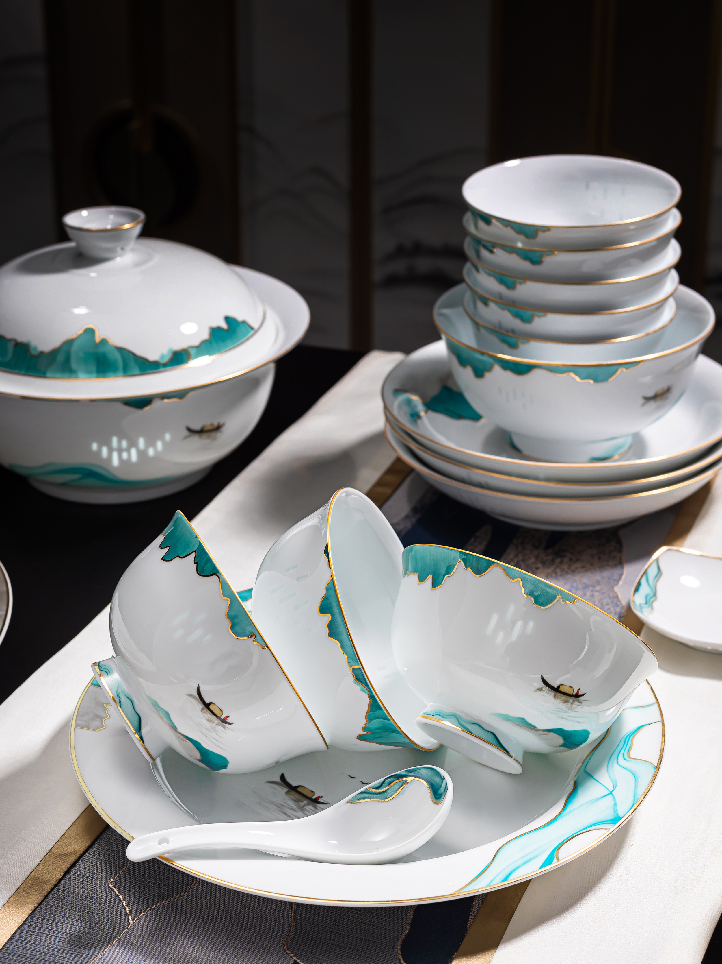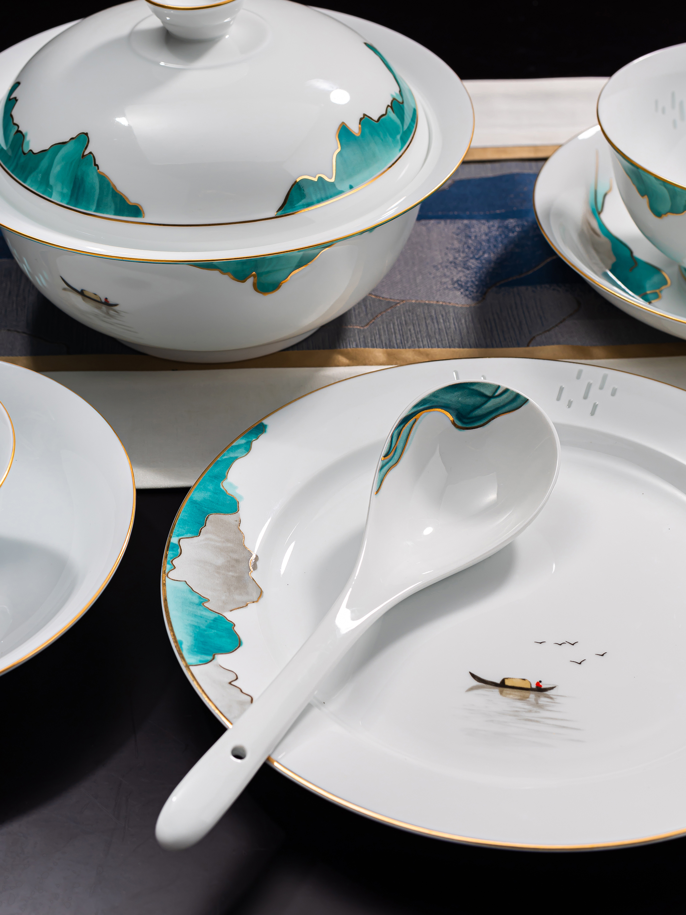 富玉 | 景德镇高温玲珑瓷餐具组合轻奢高级感忘川餐具
