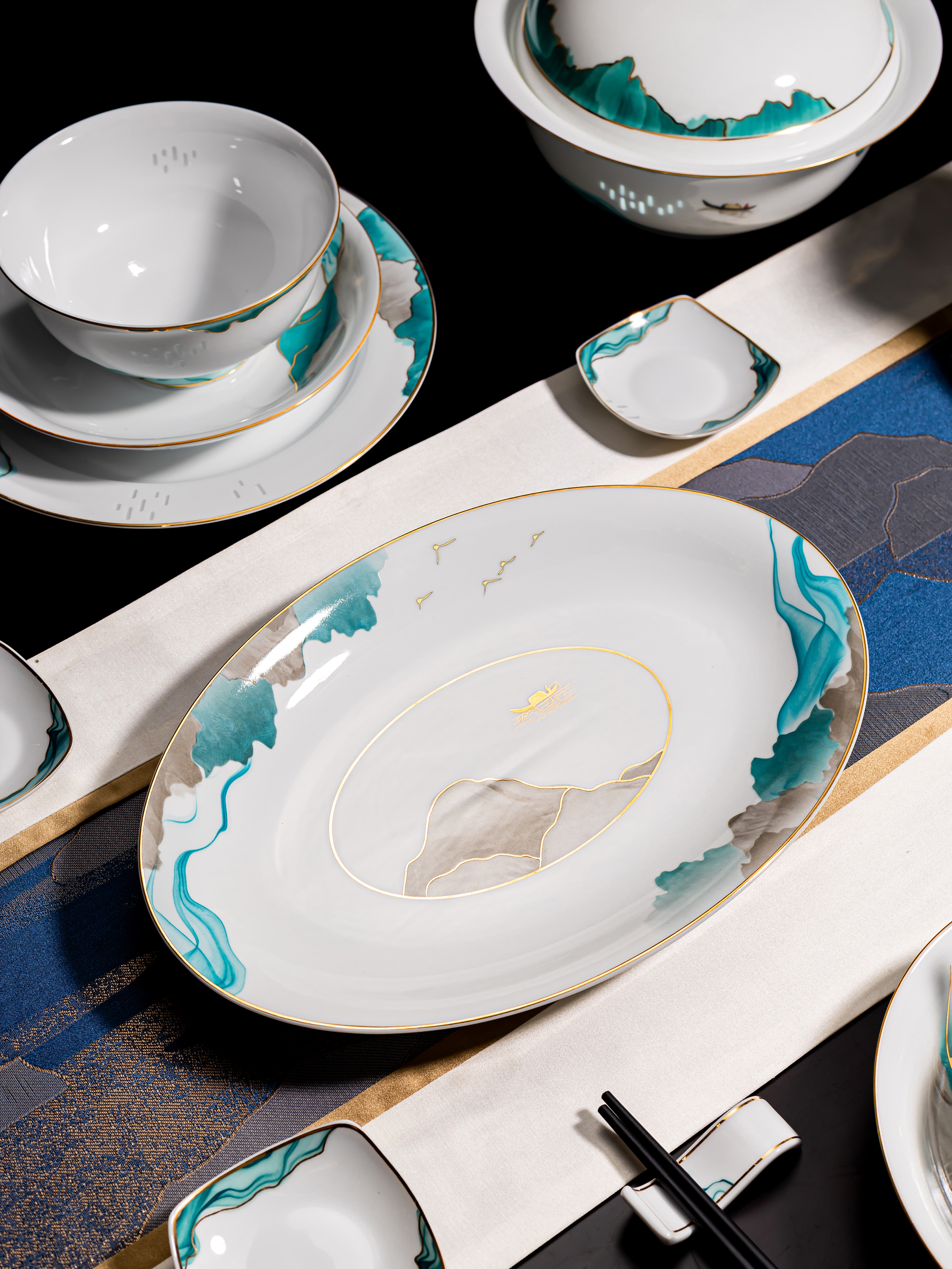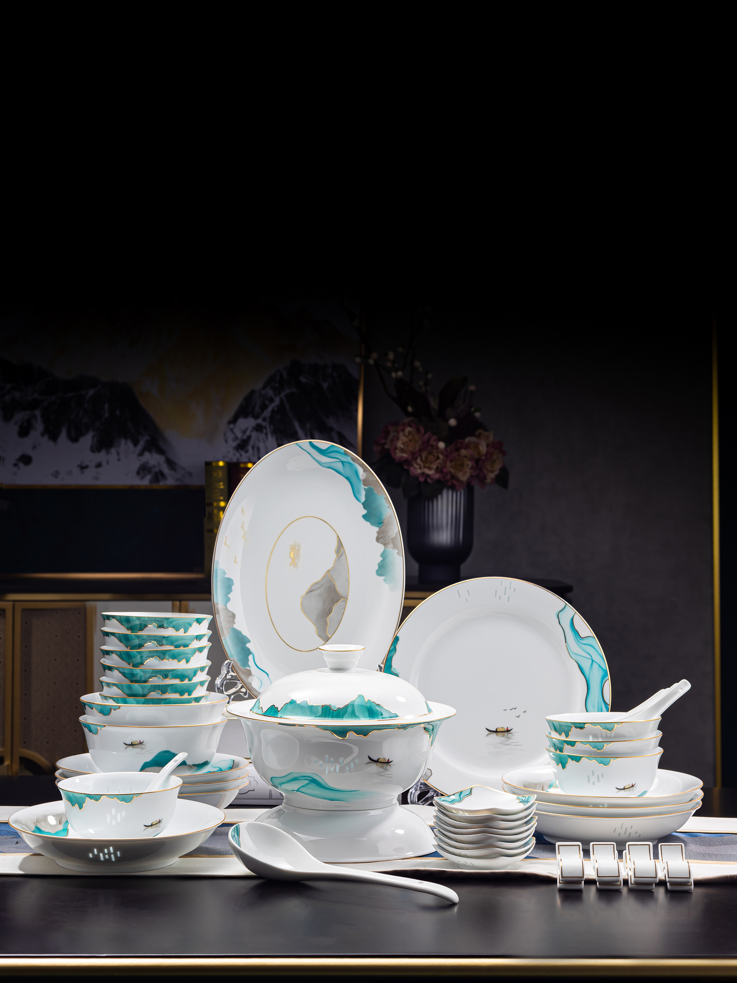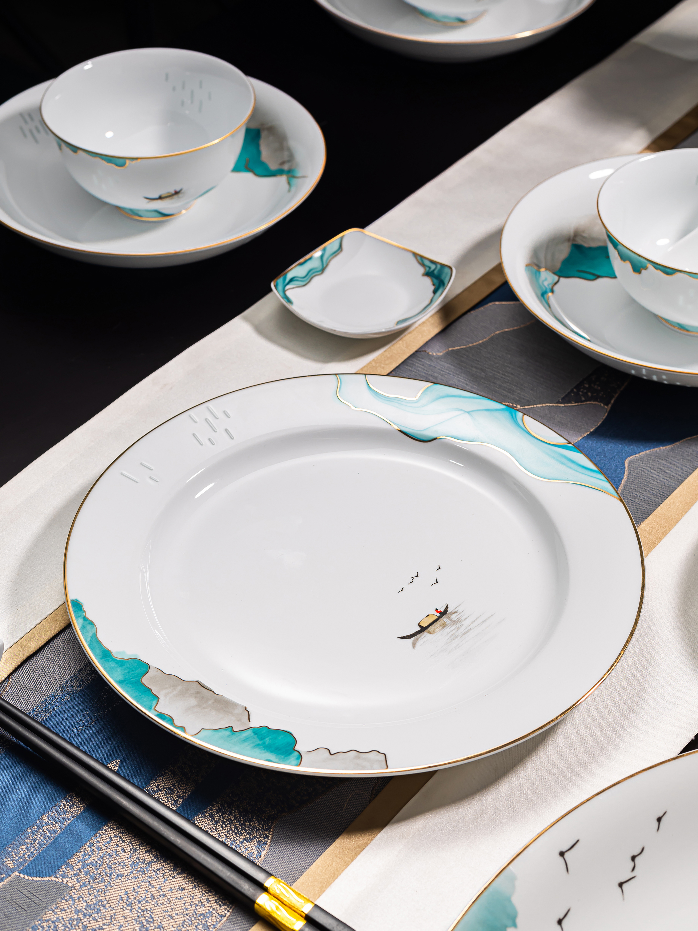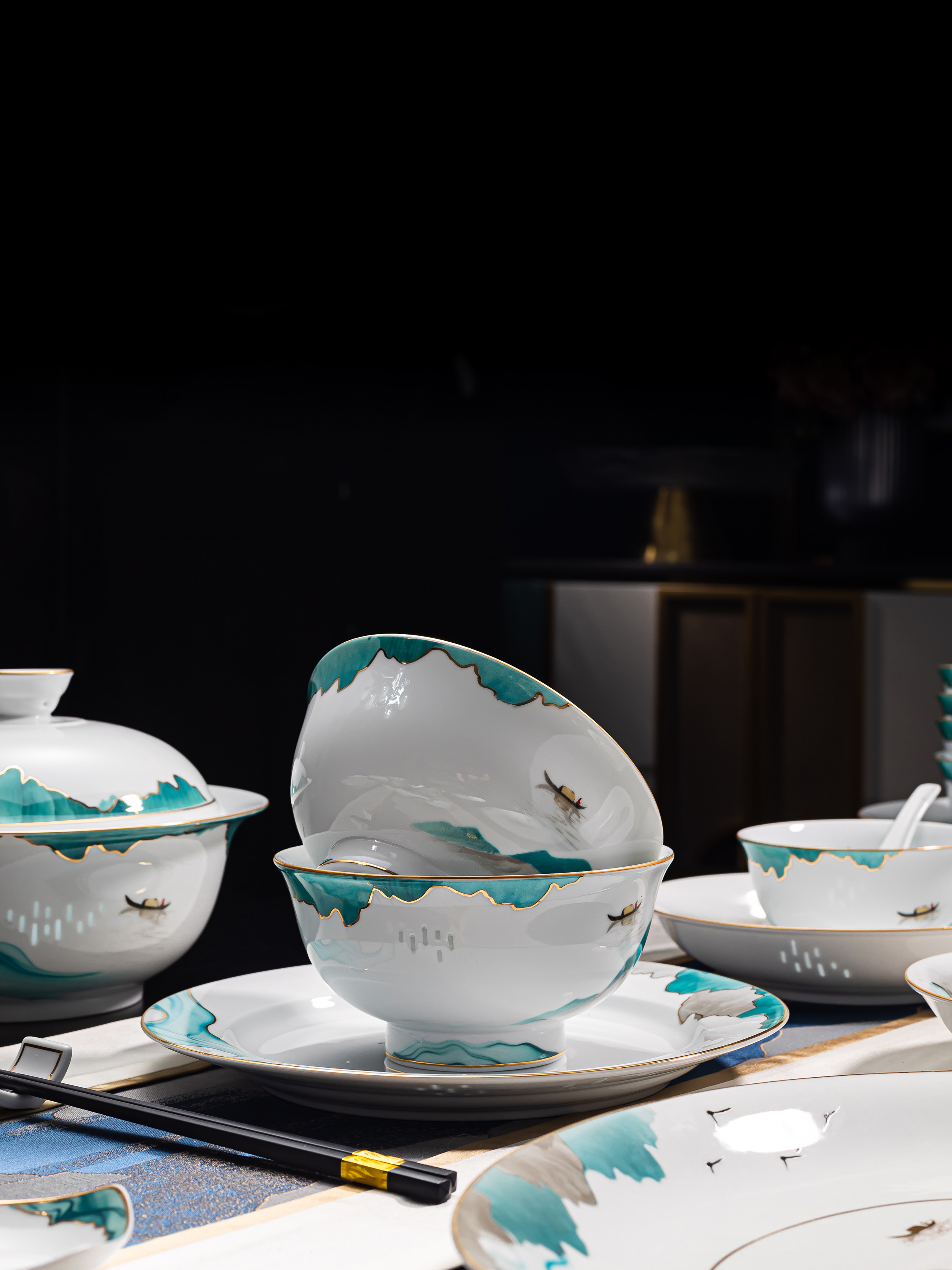 富玉 | 景德镇高温玲珑瓷餐具组合轻奢高级感忘川餐具