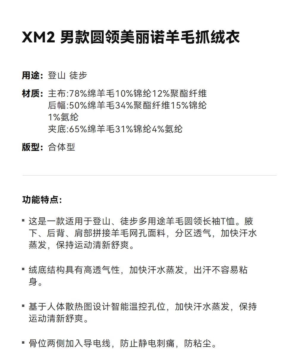 KAILAS凯乐石 XM2 男款圆领美丽诺羊毛抓绒衣 KG2532117