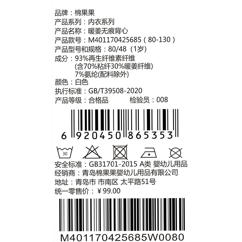 M401170425685 商品缩略图2 棉果果冬季新品暖姜棉柔软保暖80-130码暖姜无痕背心