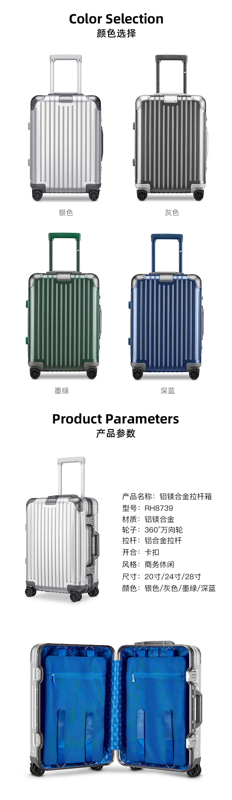 高端铝镁合金拉杆箱-日默瓦同款