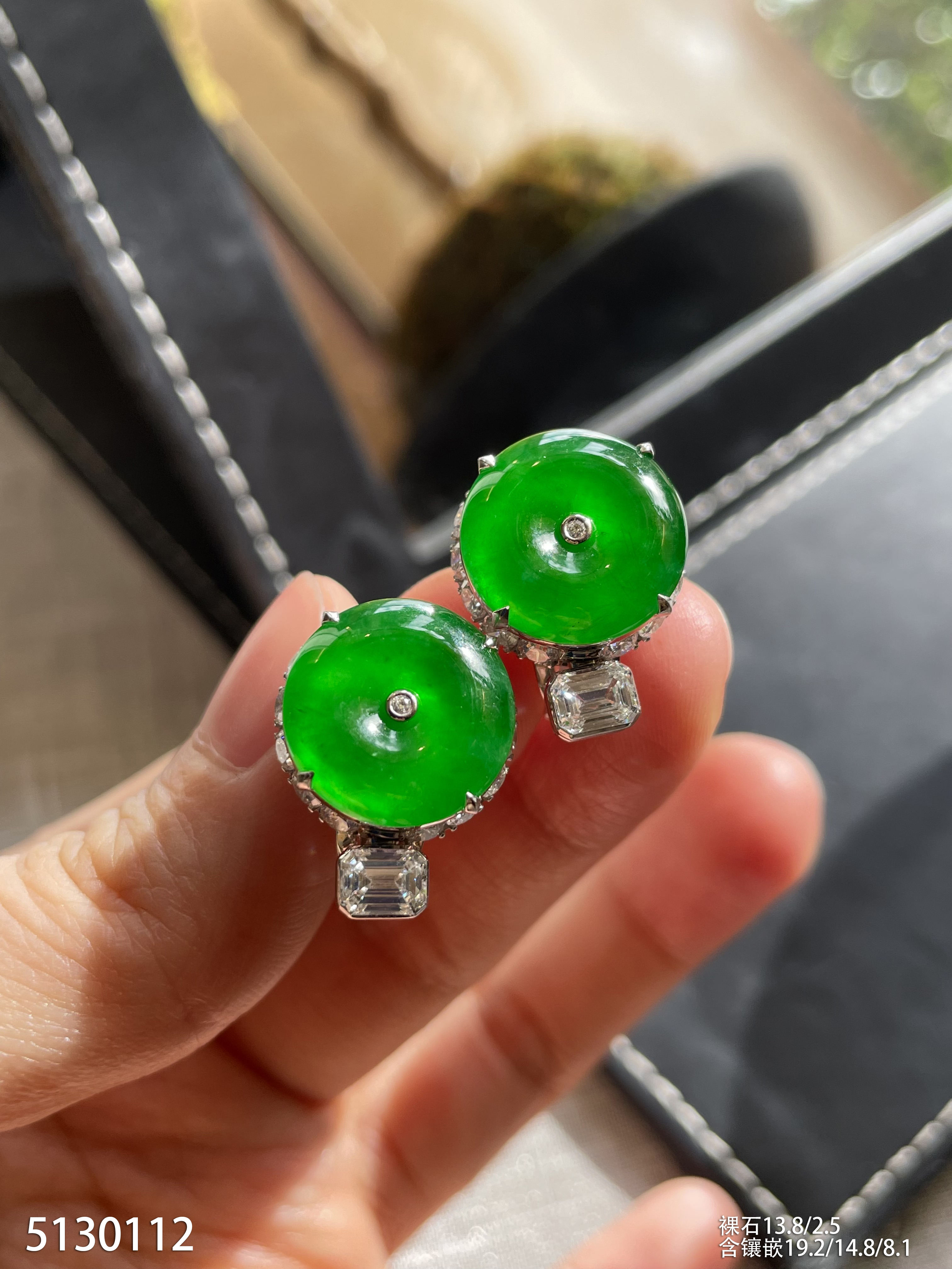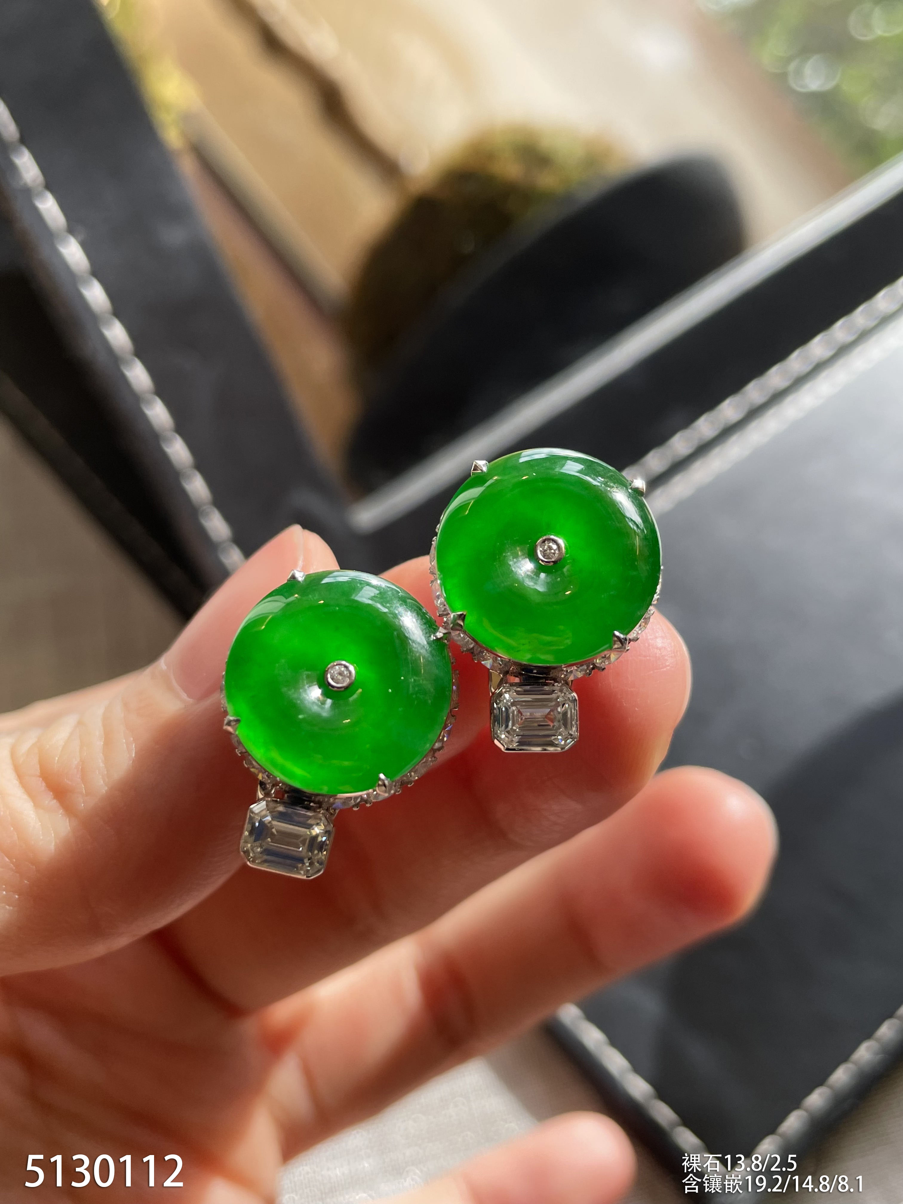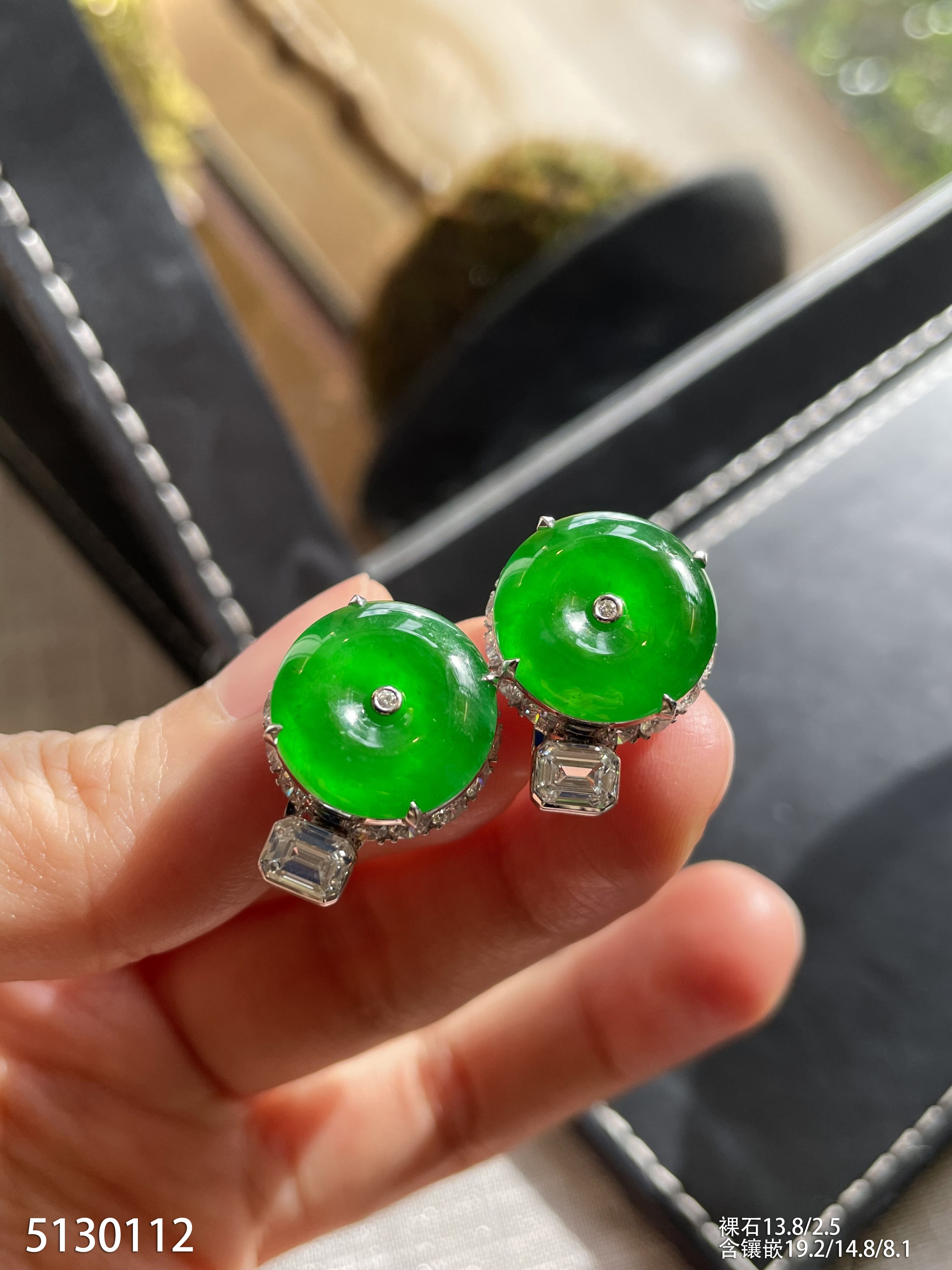 老坑璃种帝王绿平安扣耳钉【5130112】具体价格微信咨询