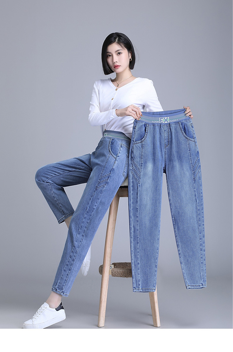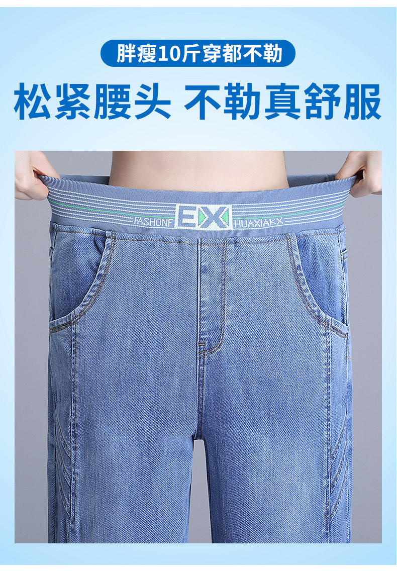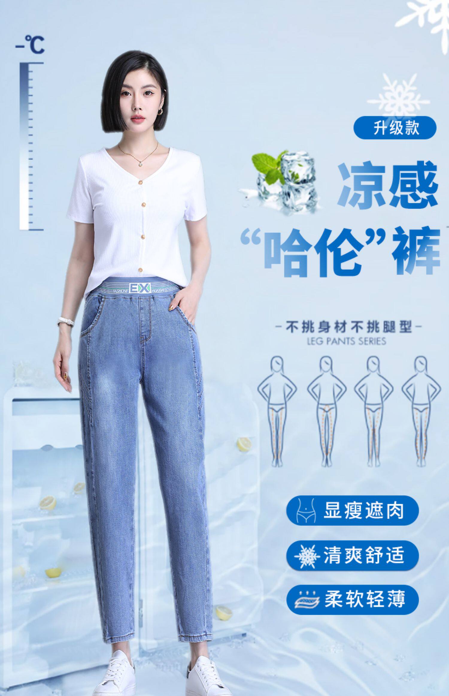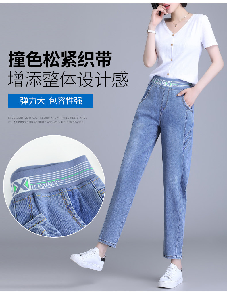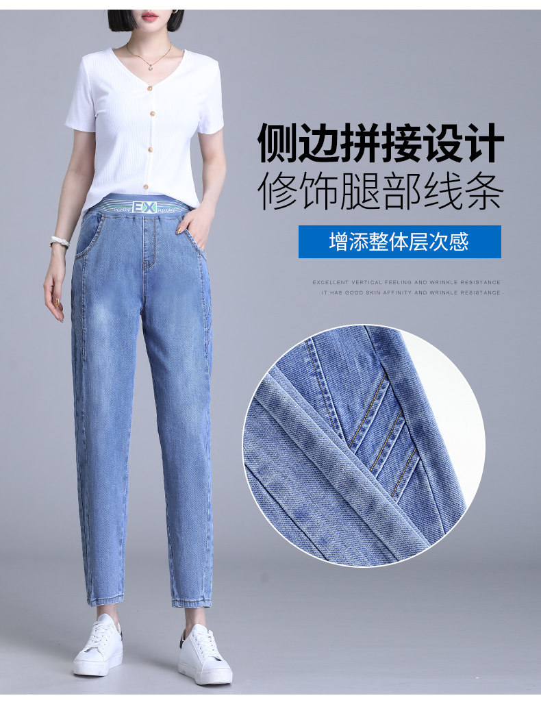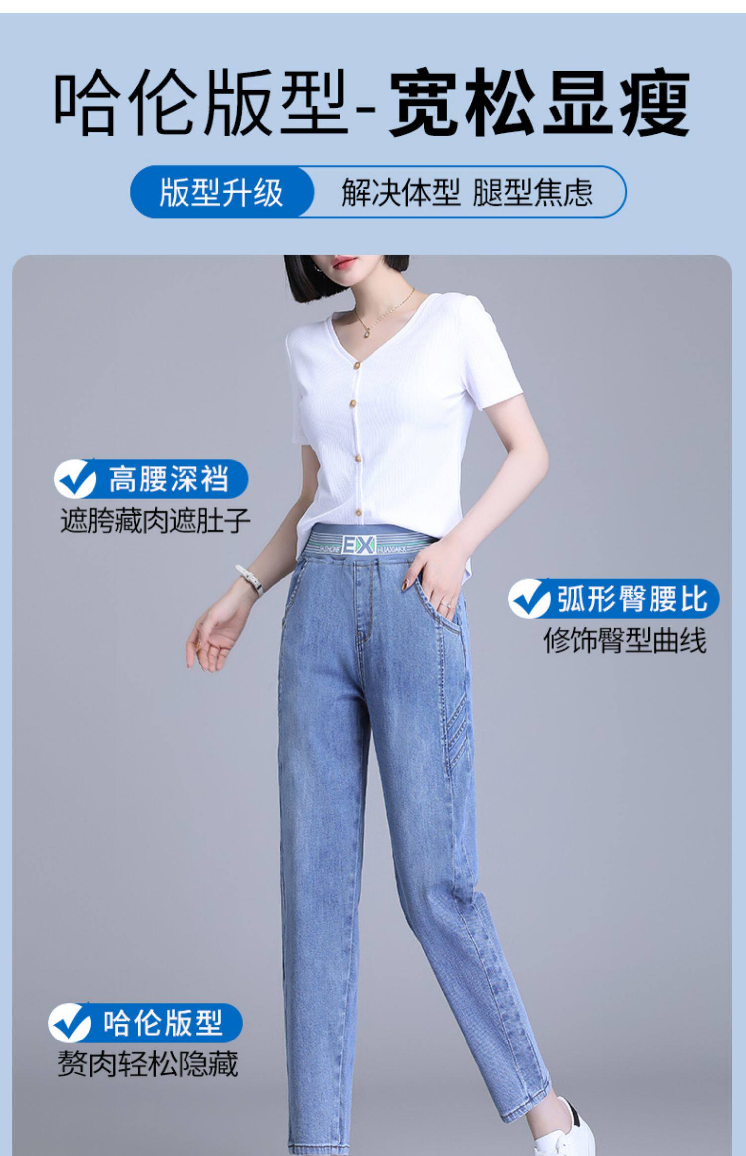 九分哈伦牛仔裤女夏季薄款2026新款大码女裤休闲妈妈女士萝卜裤子