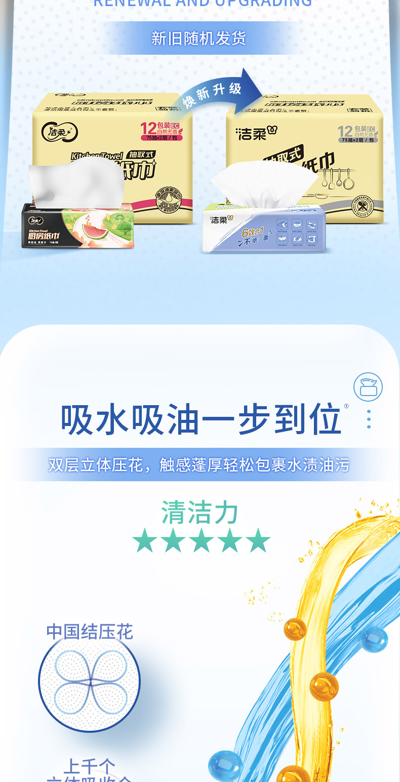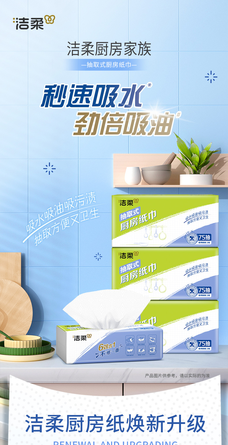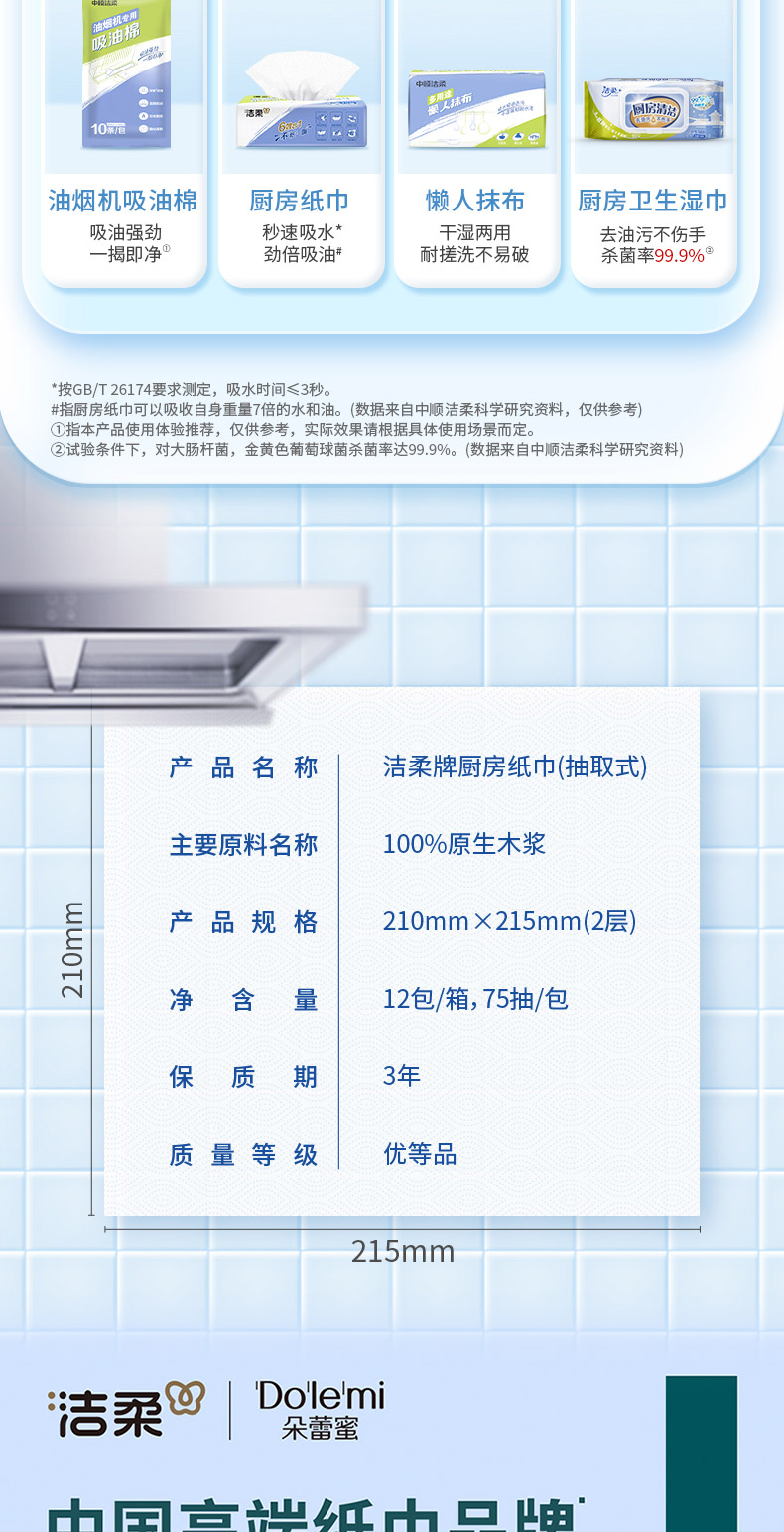 洁柔厨房纸巾75抽2层(12包装)JK201-12E