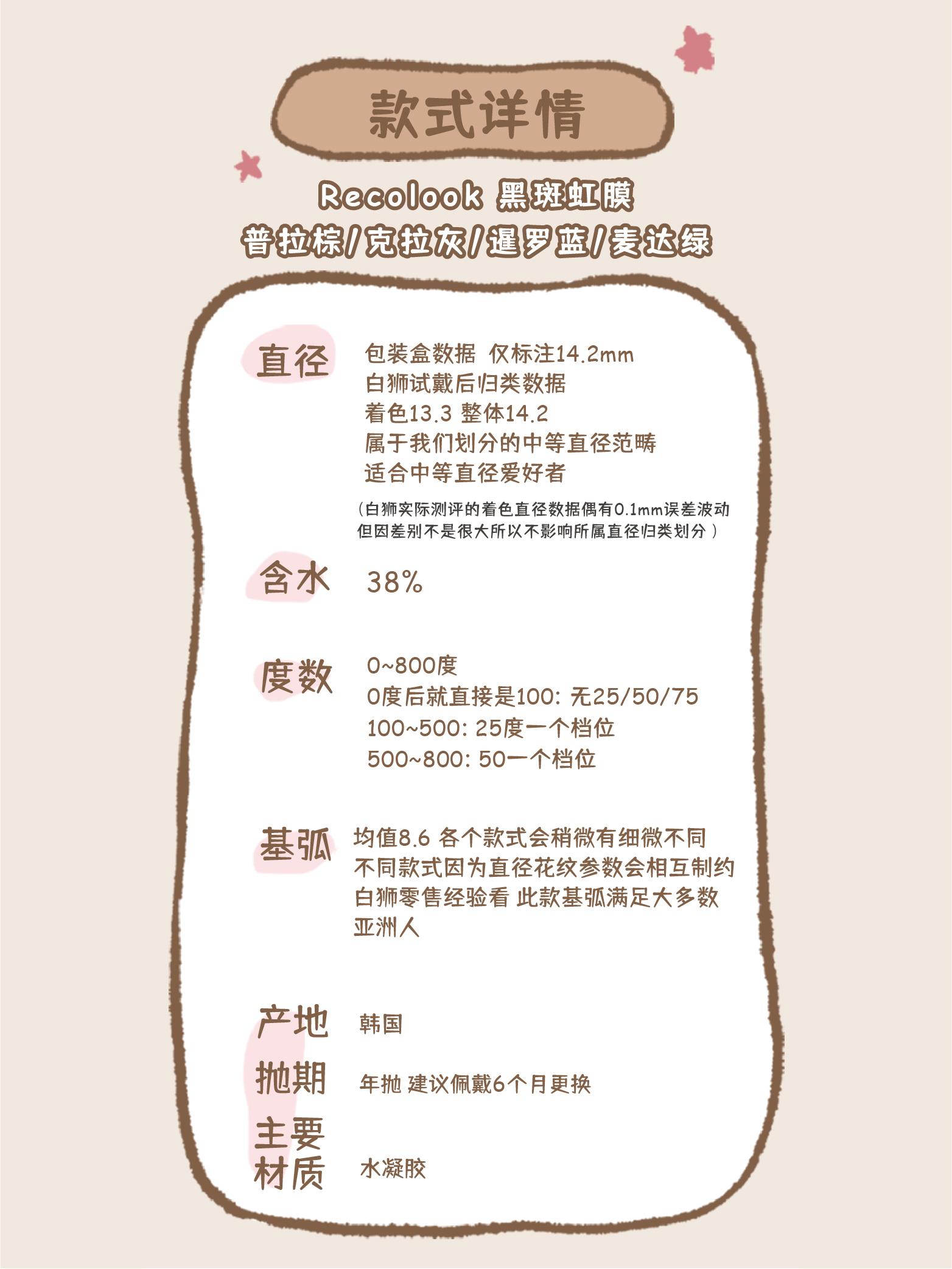 Recolook旗下 黑斑虹膜 普拉棕&克拉灰&暹罗蓝&麦达绿14.2mm 中等直径