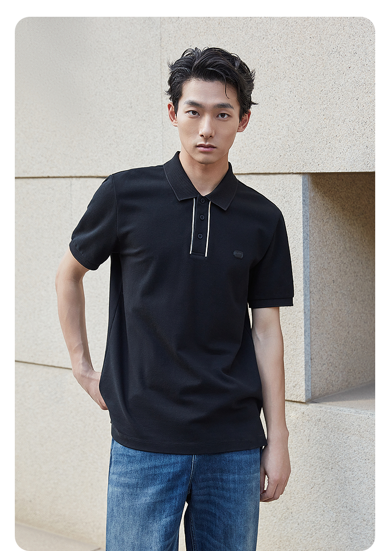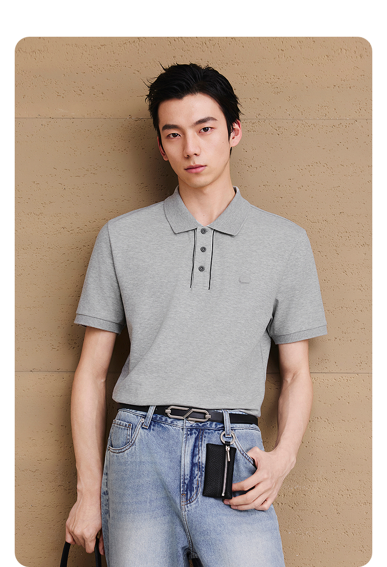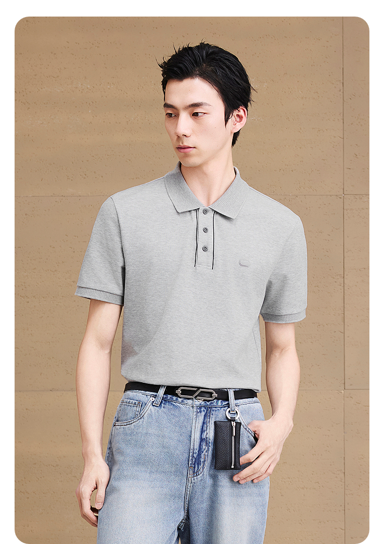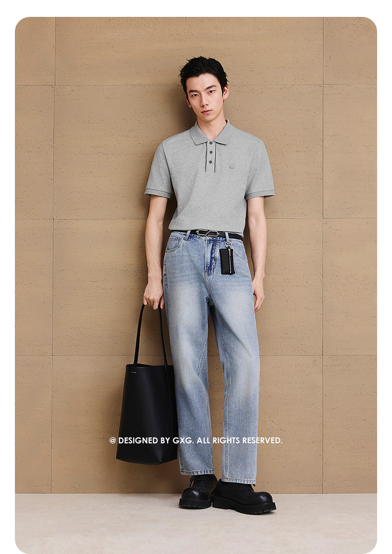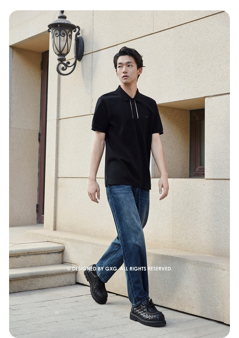 【凉感】GXG男装皮标通勤polo衫短袖男休闲上衣 25夏新品