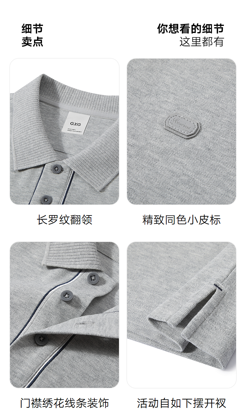 GXG男装 翻领卫衣撞色拼接肌理上衣polo领长袖内搭 2025秋季新品