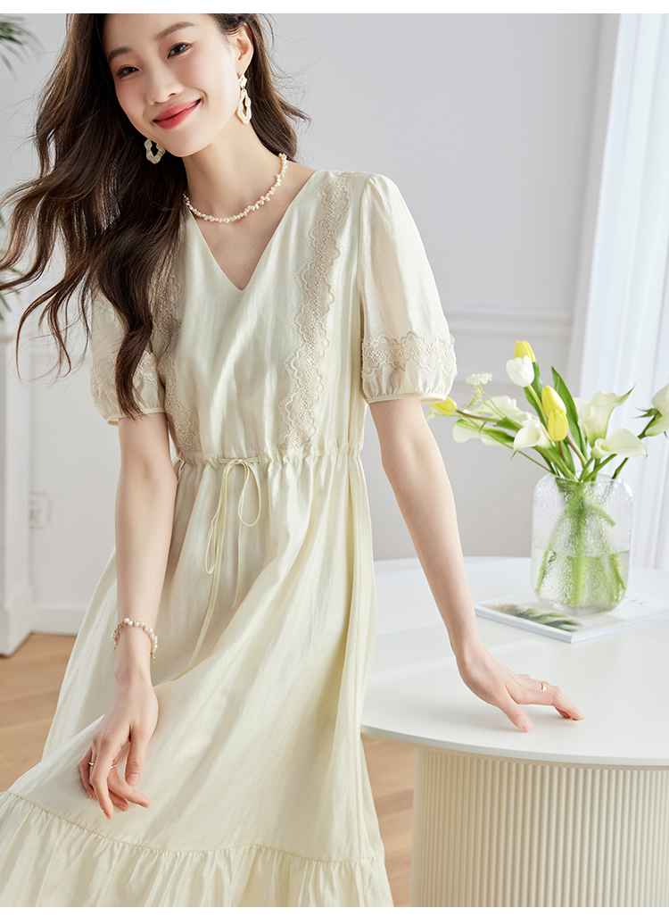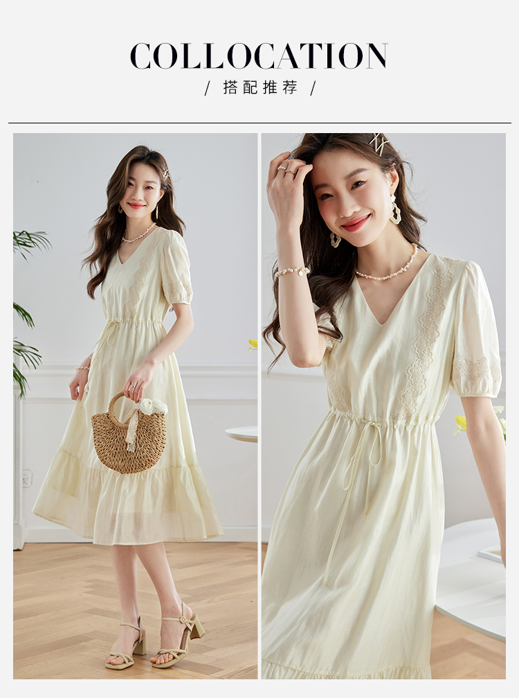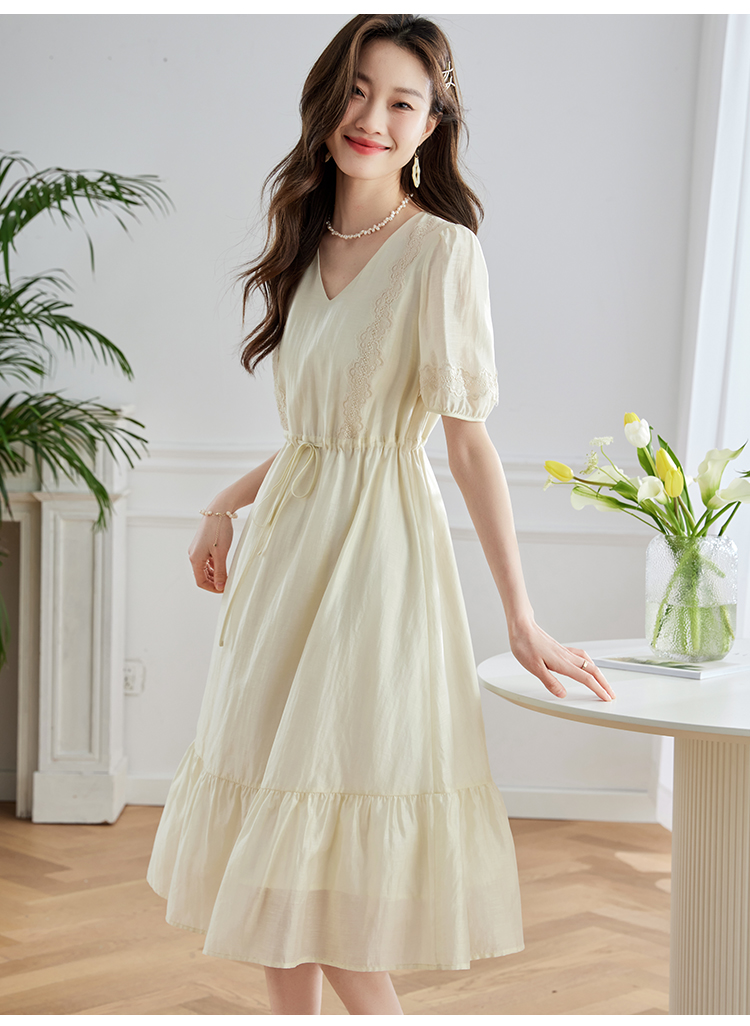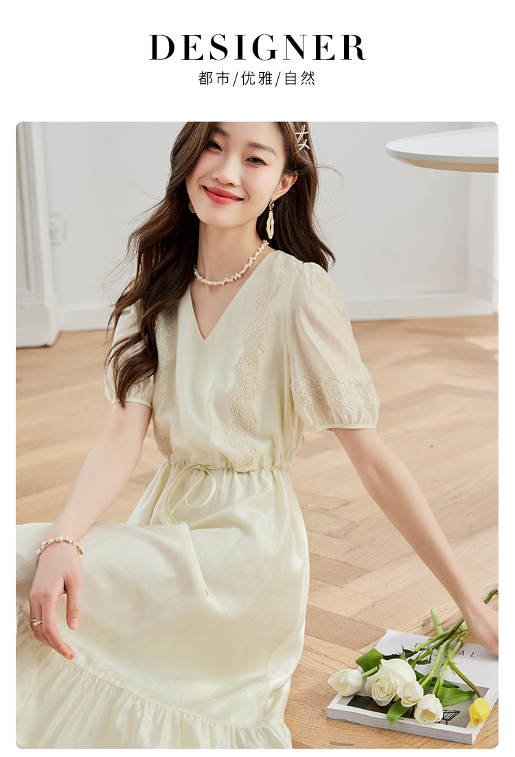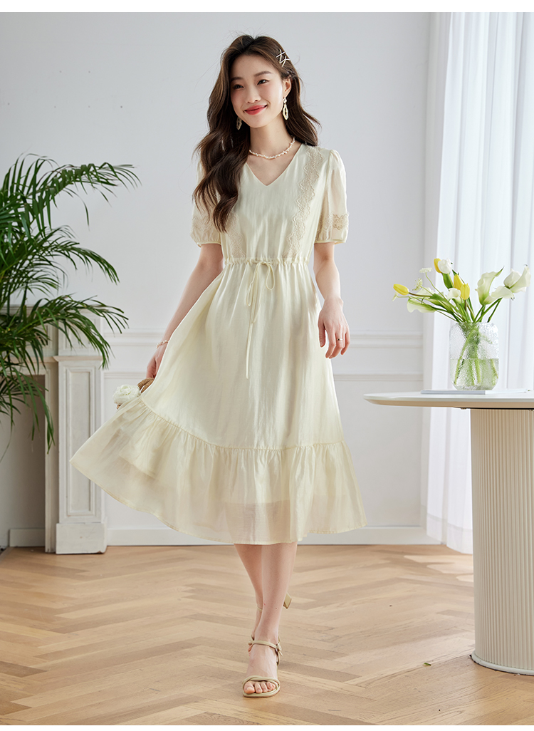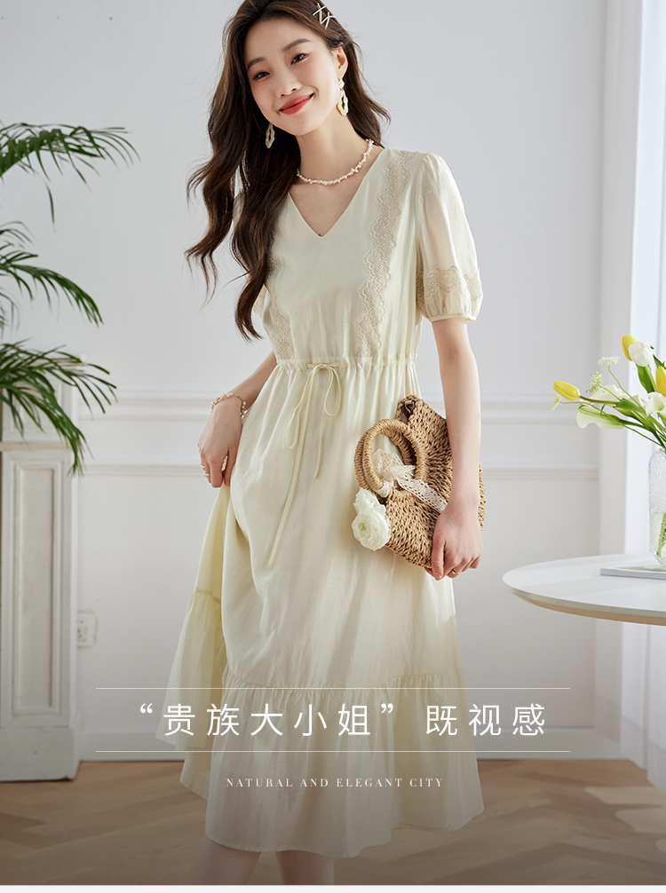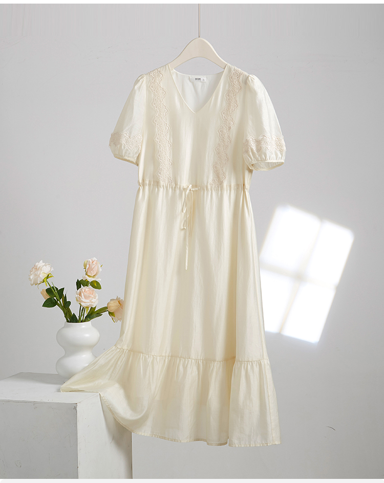 【专属特价】熙世界天丝连衣裙女高级感夏季气质收腰泡泡袖V领裙子2025年新款