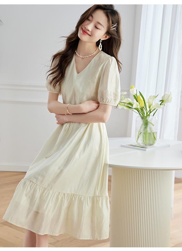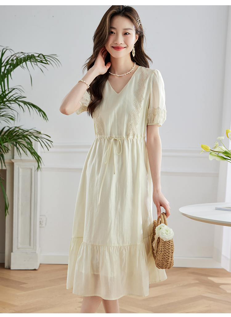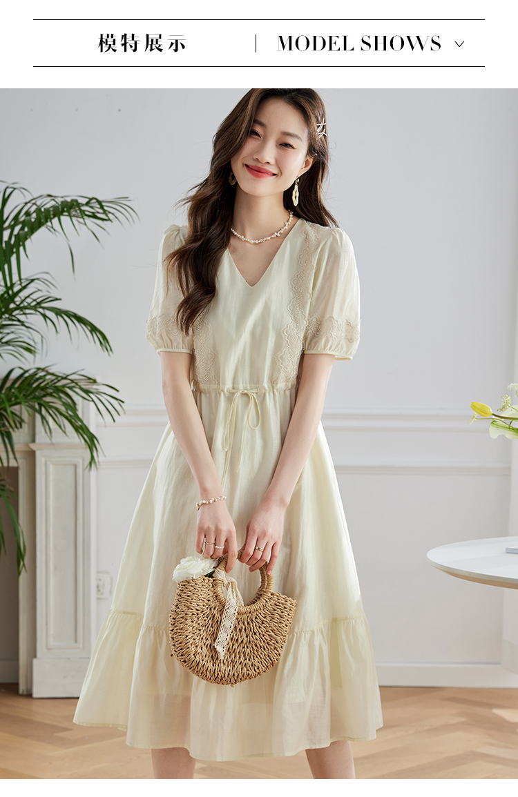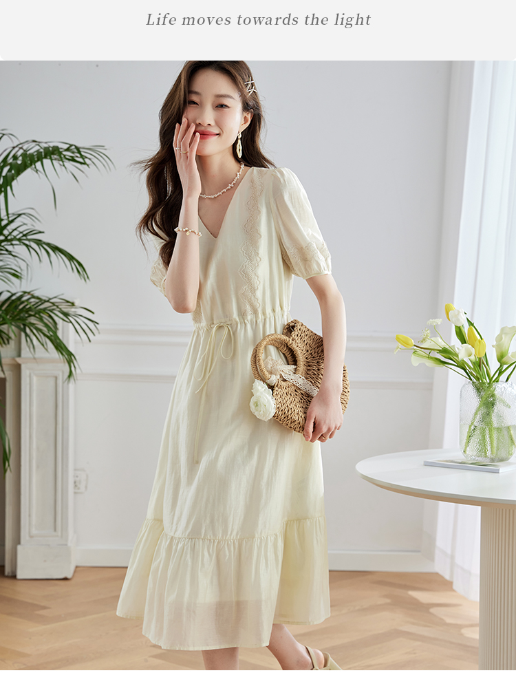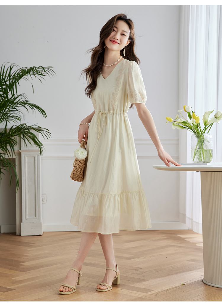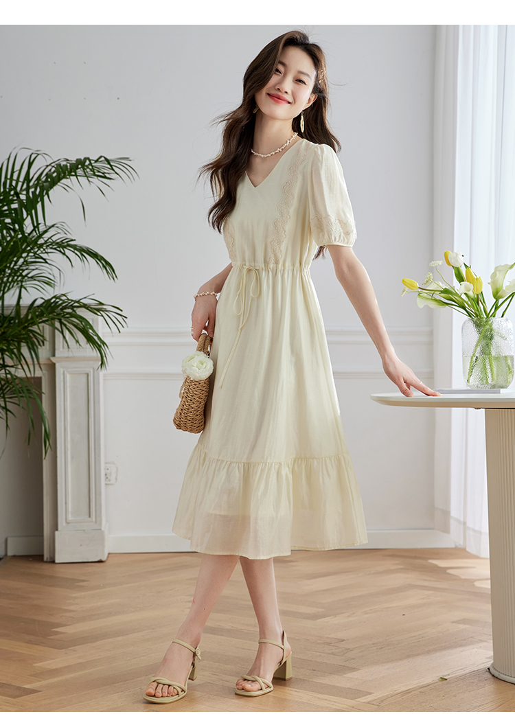 【专属特价】熙世界天丝连衣裙女高级感夏季气质收腰泡泡袖V领裙子2025年新款