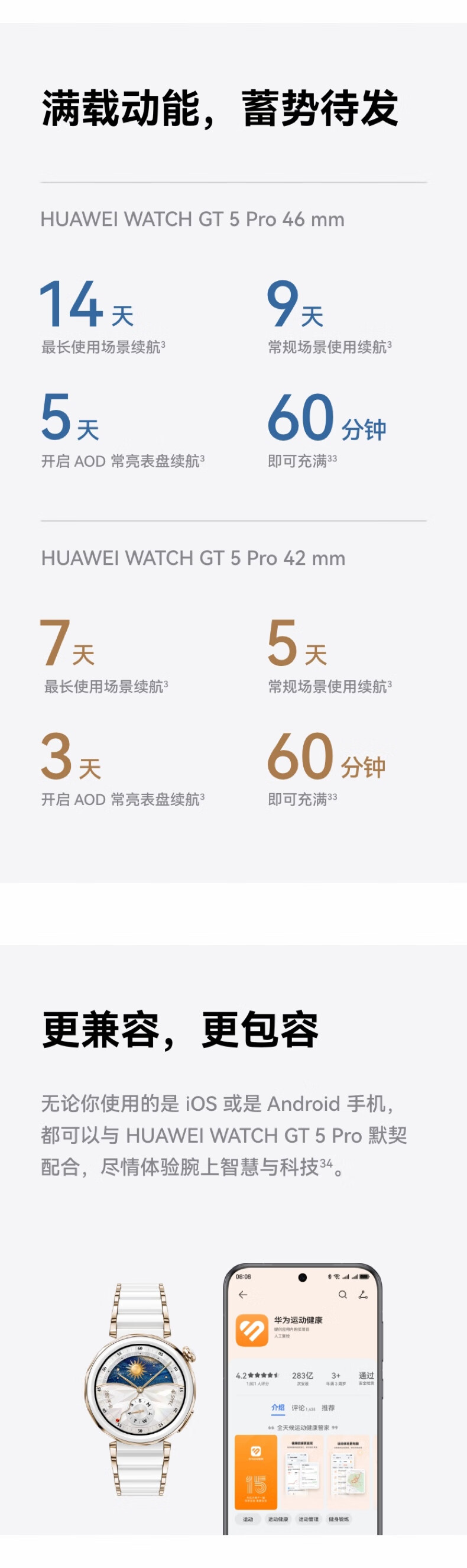 华为 HUAWEI WATCH GT 5 Pro智能手表 46mm大表 强劲续航专业运动功能