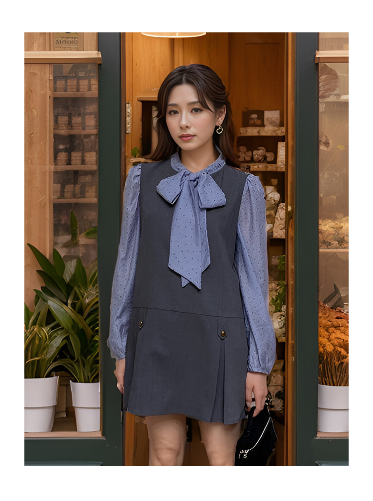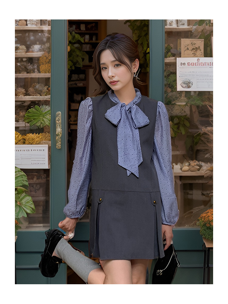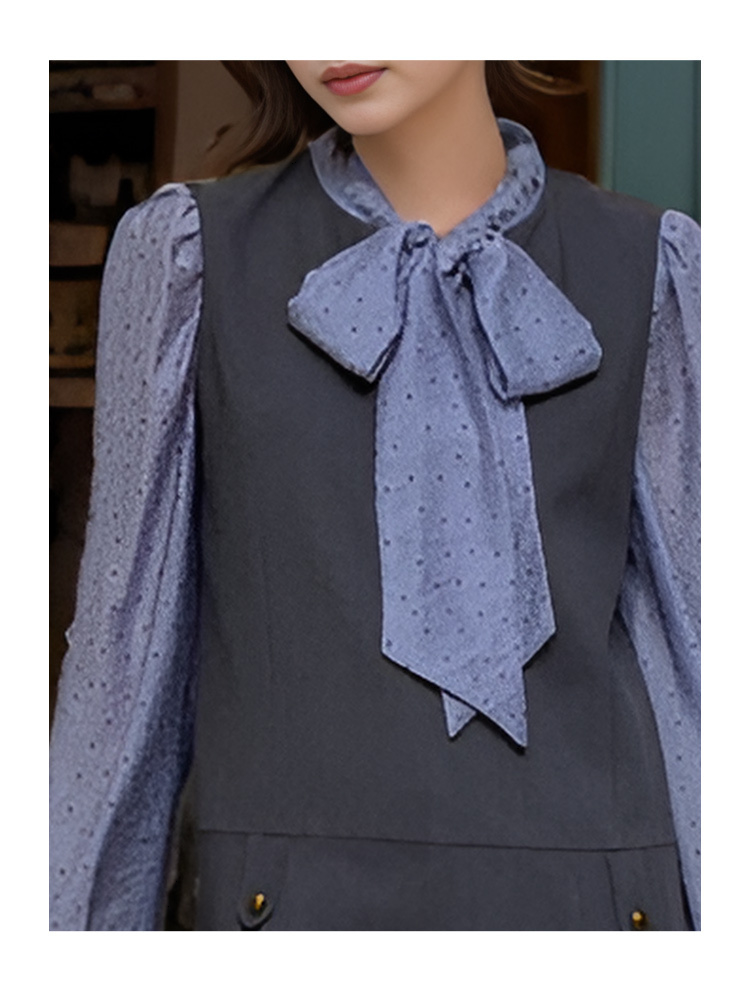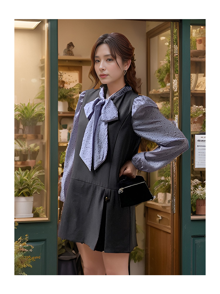 9/7奢姿大码女装2024秋季蝴蝶结绑带设计拼接连衣裙胖妹妹时尚裙子9943891279