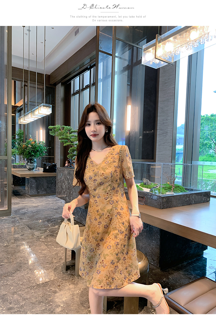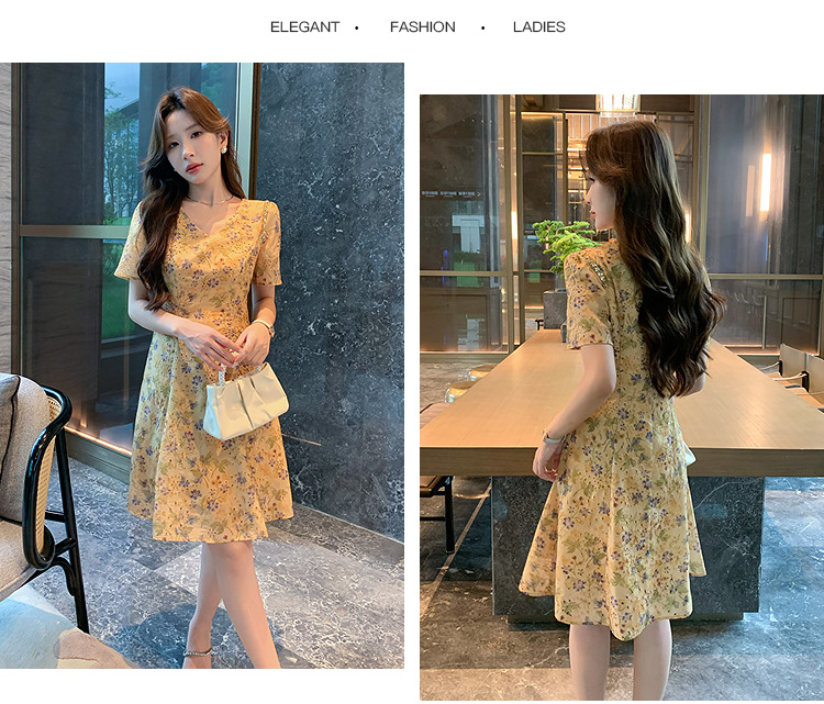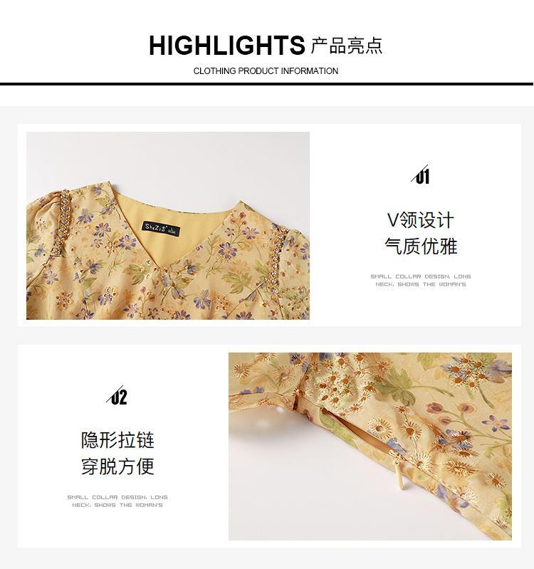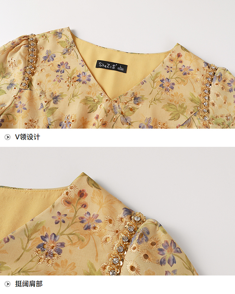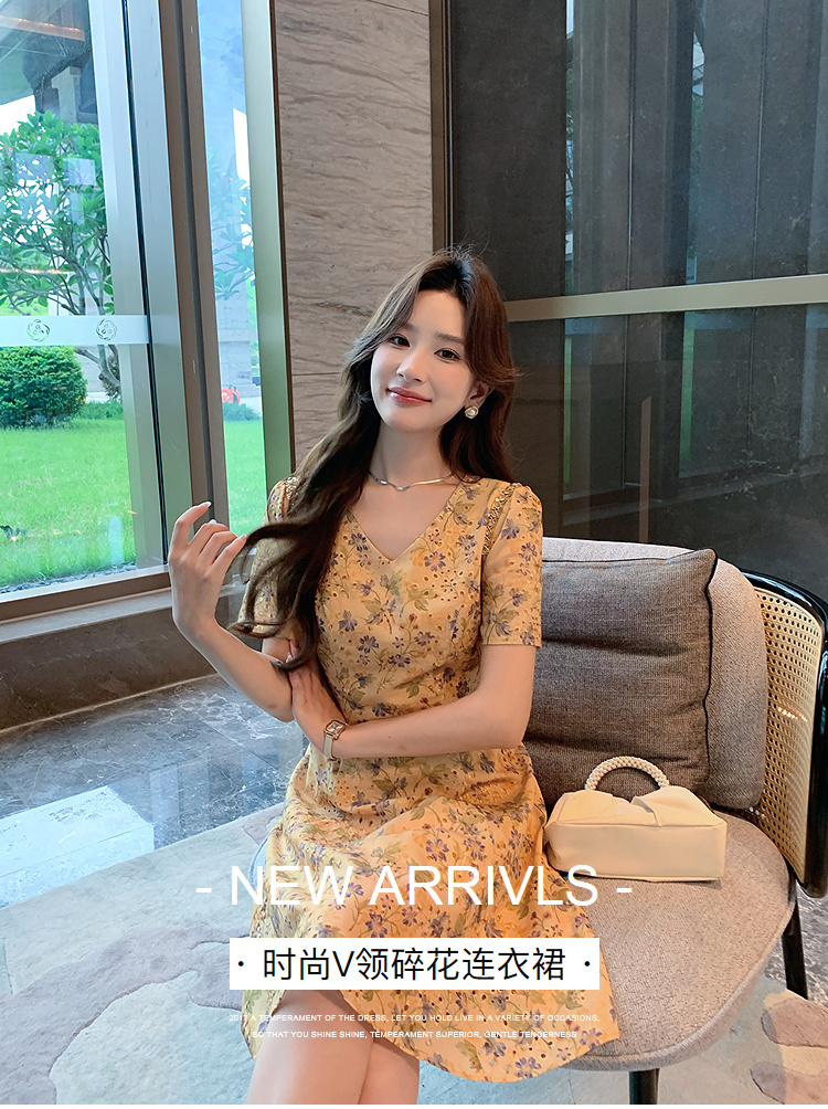 奢姿大码女装2026夏季减龄碎花设计V领连衣裙胖妹妹洋气时尚裙子9952853503
