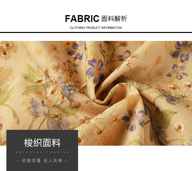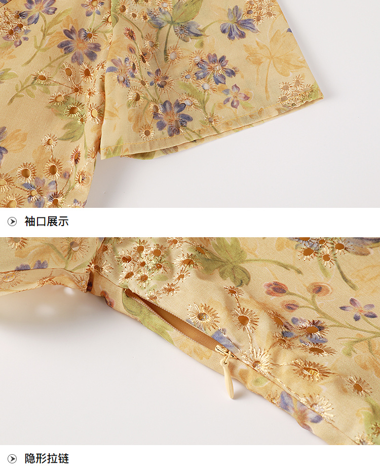 奢姿2026大码女装刺绣蕾丝连衣裙胖妹妹夏季方领遮肉温柔风A字裙9962860008