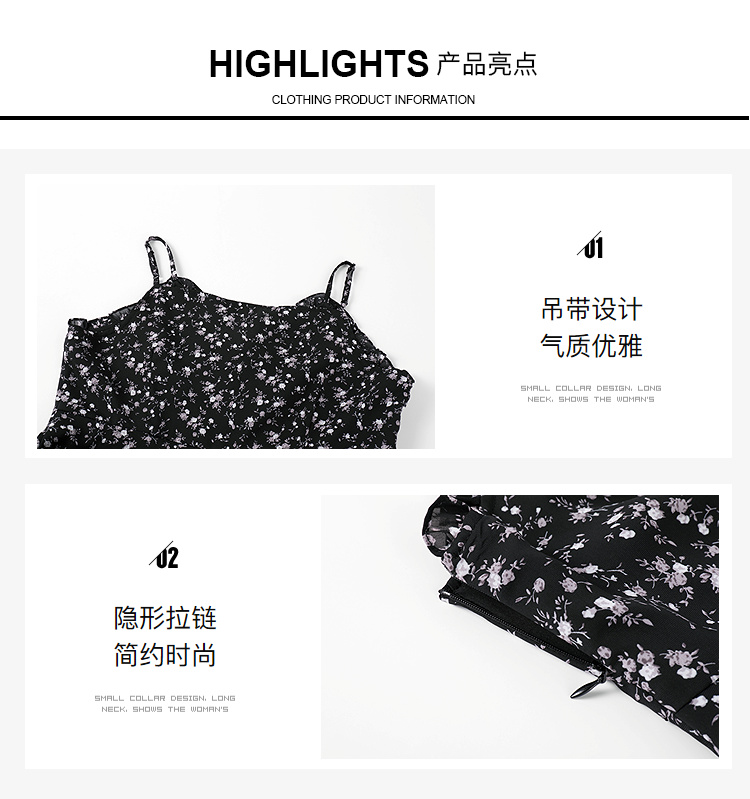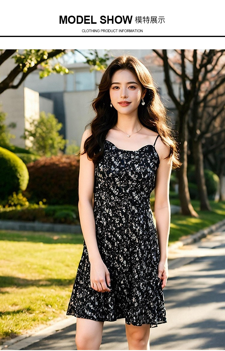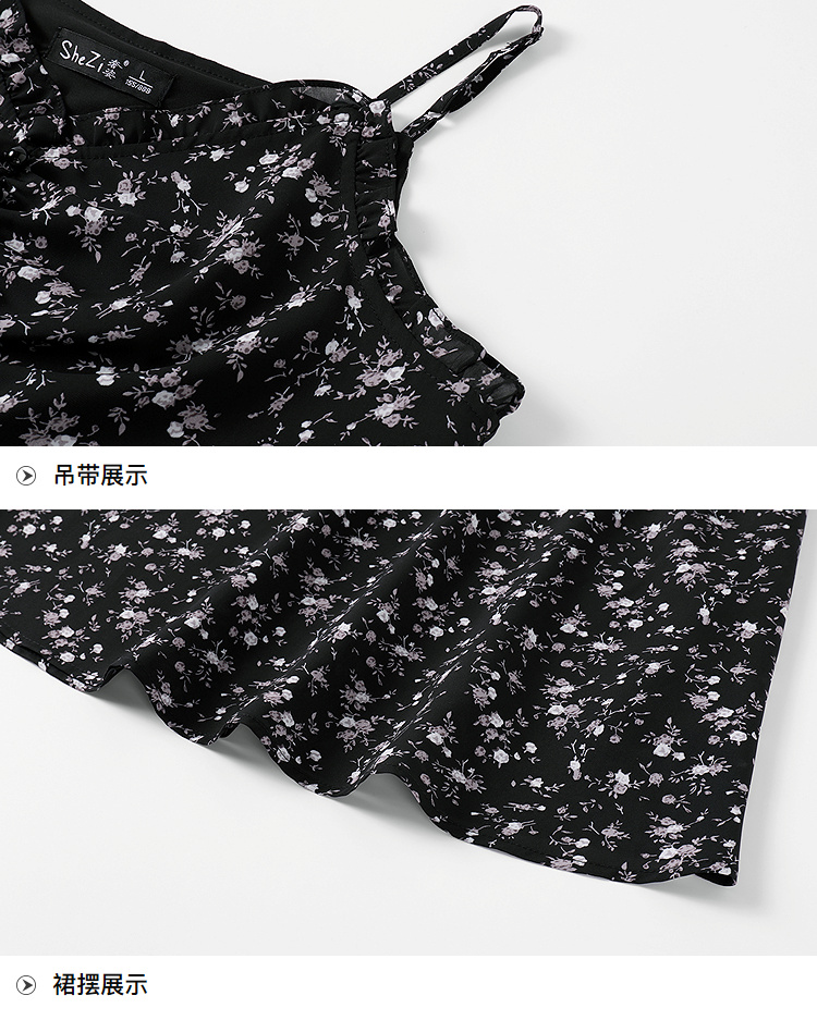 奢姿大码女装2025夏季气质减龄吊带连衣裙胖妹妹时尚碎花小黑裙9951853249B