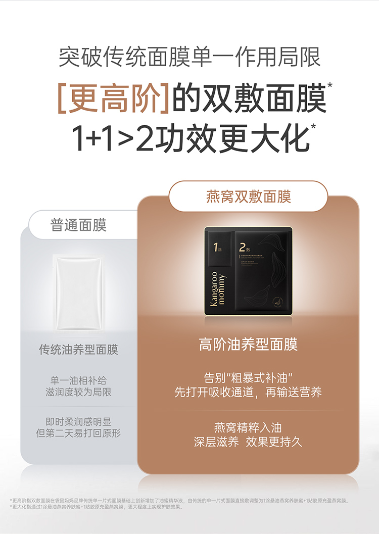 【抗老面膜】熬夜肌救急 补水抗皱紧致轮廓 袋鼠妈妈燕窝紧致弹润双敷面膜10片/20片/30片