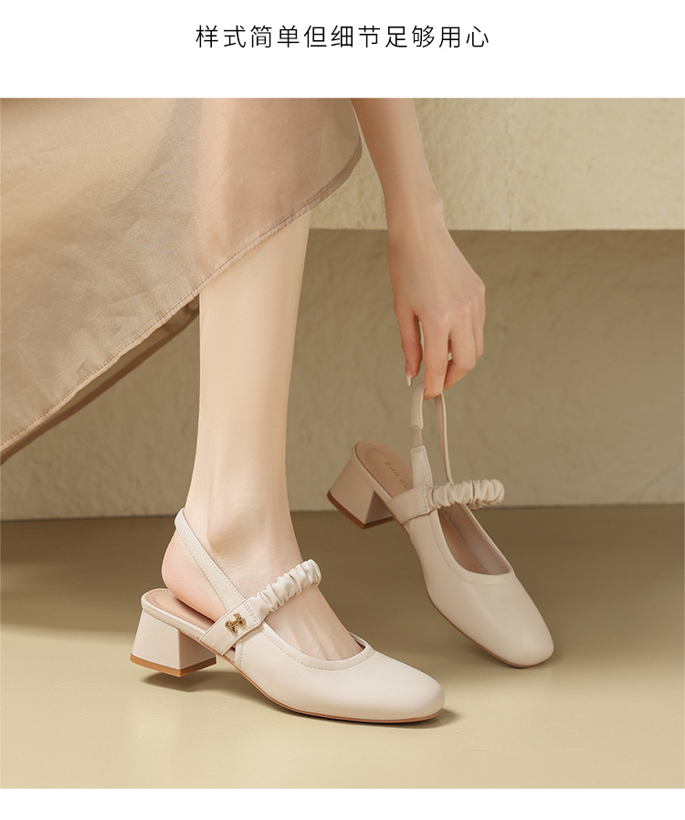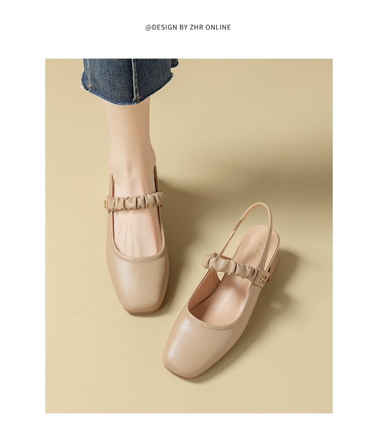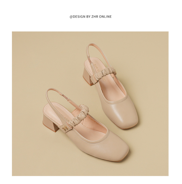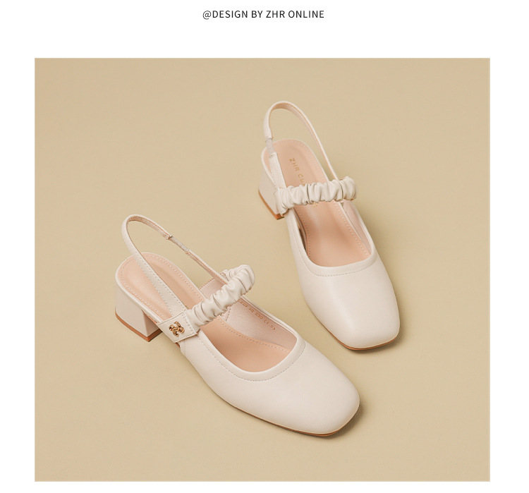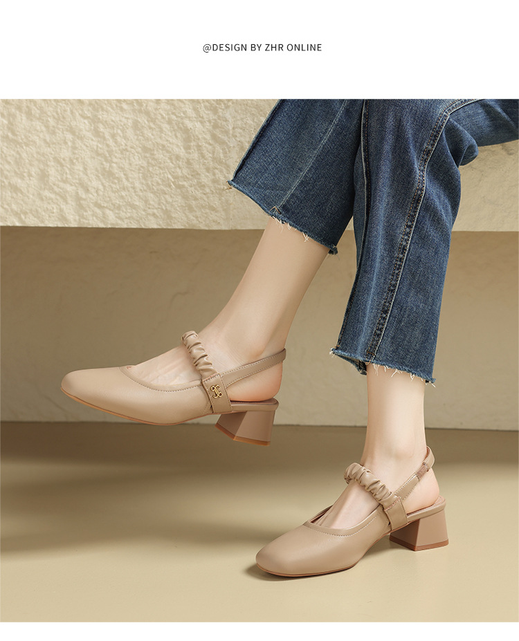 ZHR则则法式粗跟单凉鞋2024新款时尚百搭单鞋气质时装包头凉鞋女