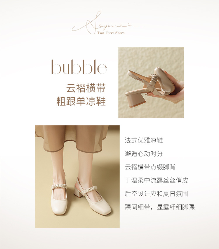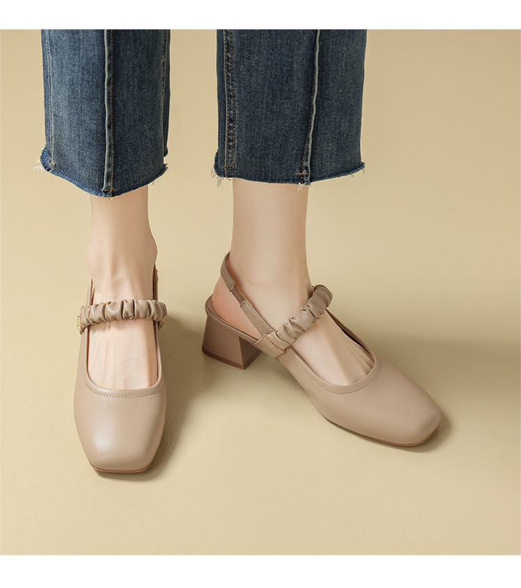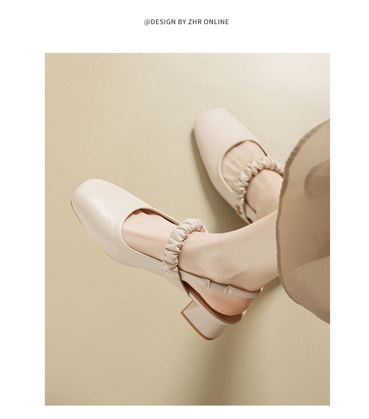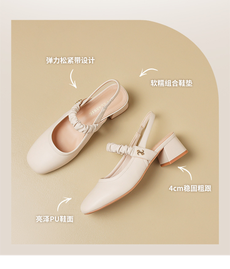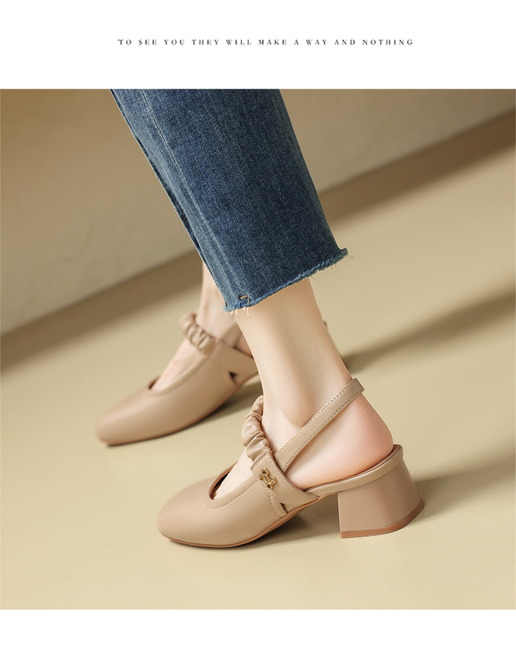 ZHR则则法式粗跟单凉鞋2024新款时尚百搭单鞋气质时装包头凉鞋女