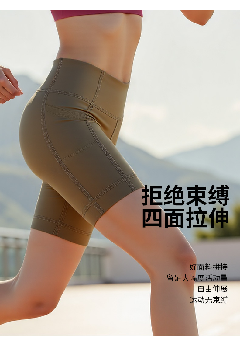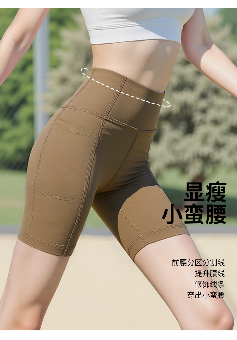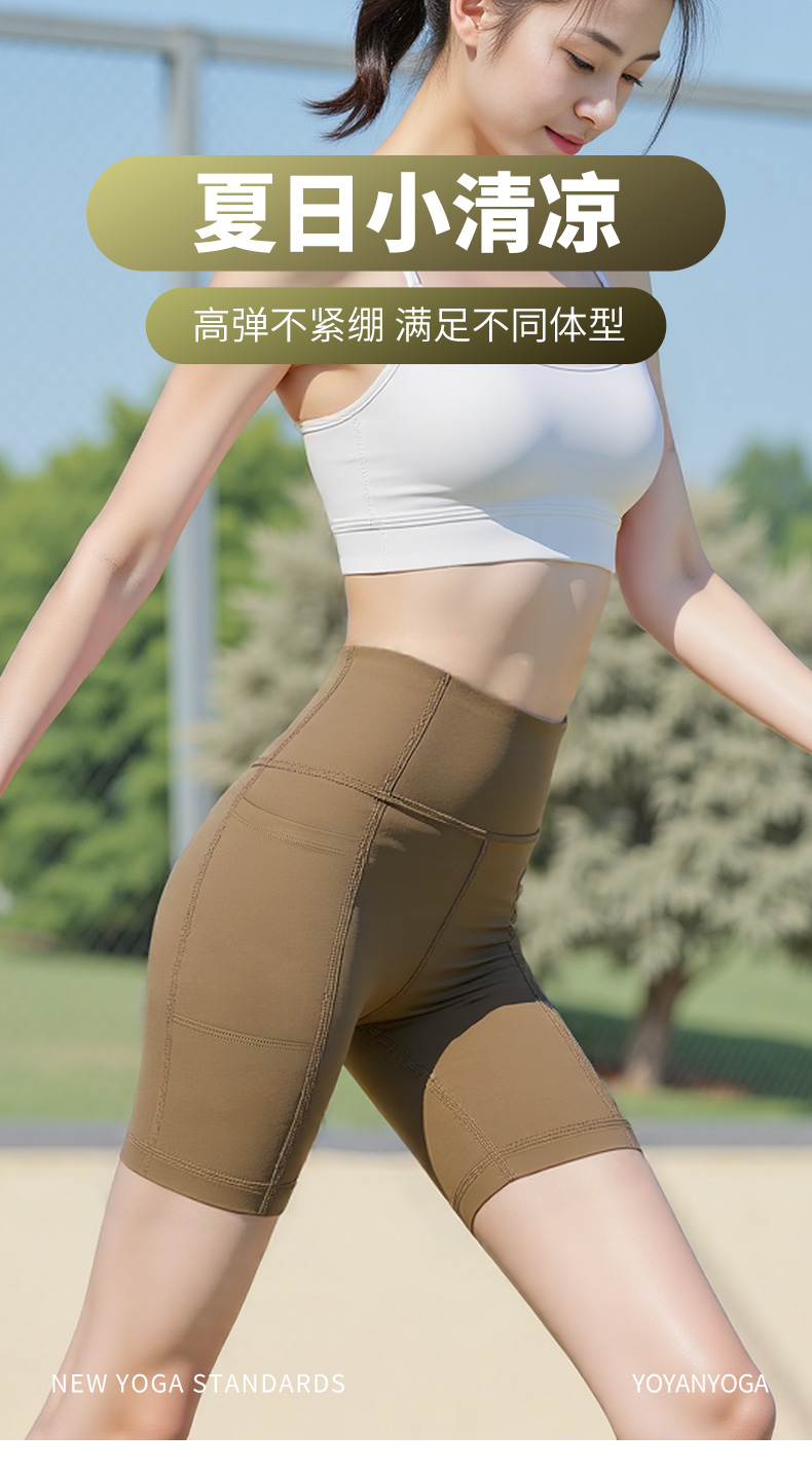 悠妍瑜伽中裤ZK25208 定制超细面料运动五分裤带口袋