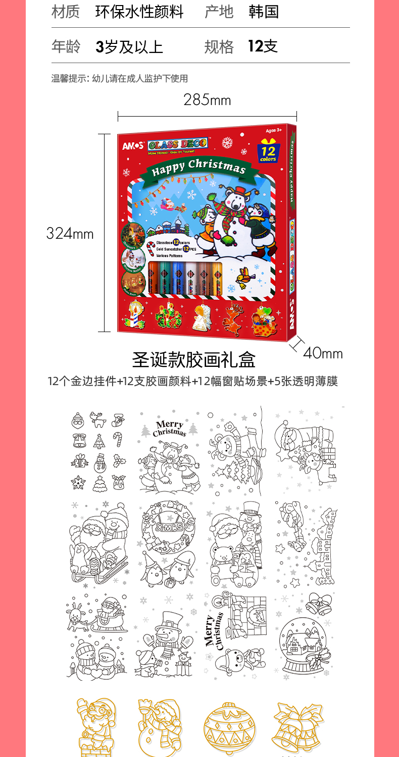 特价来袭 韩国进口 AMOS 儿童免烤玻璃胶画颜料 DIY 79元任选2款 六一礼物必选