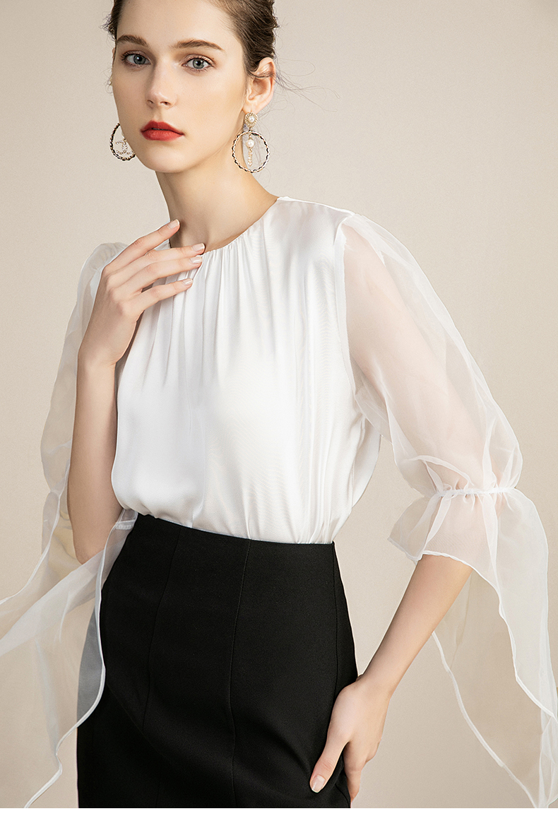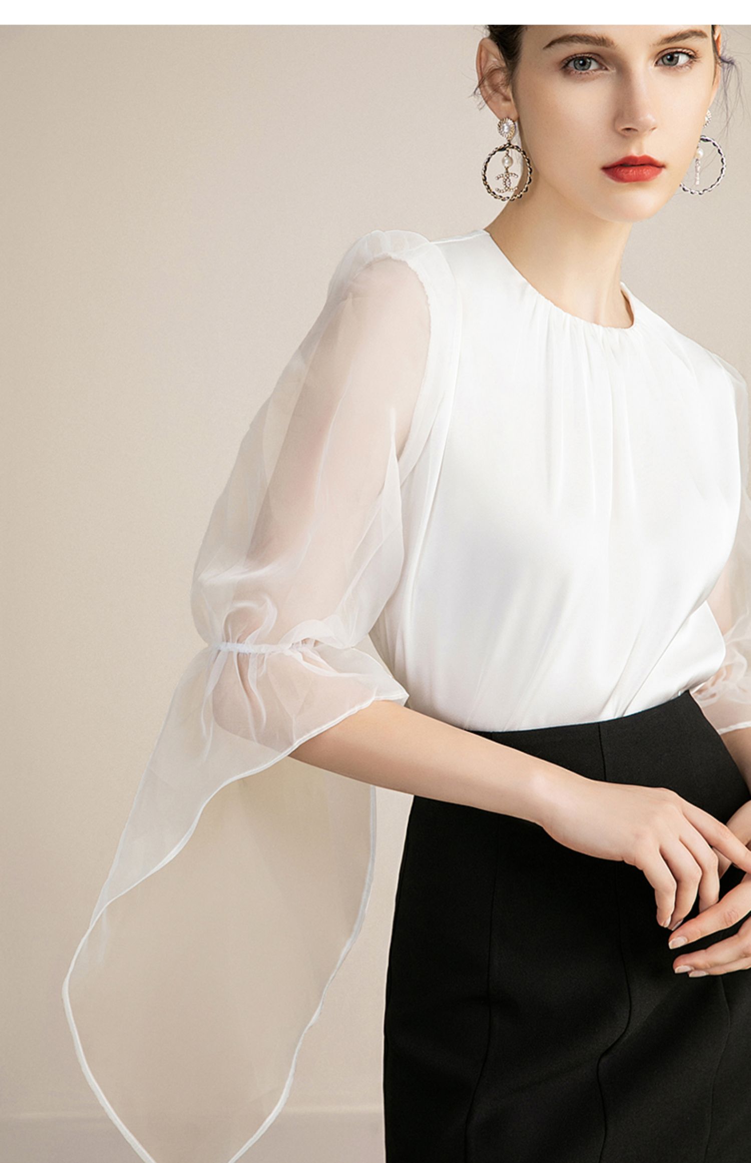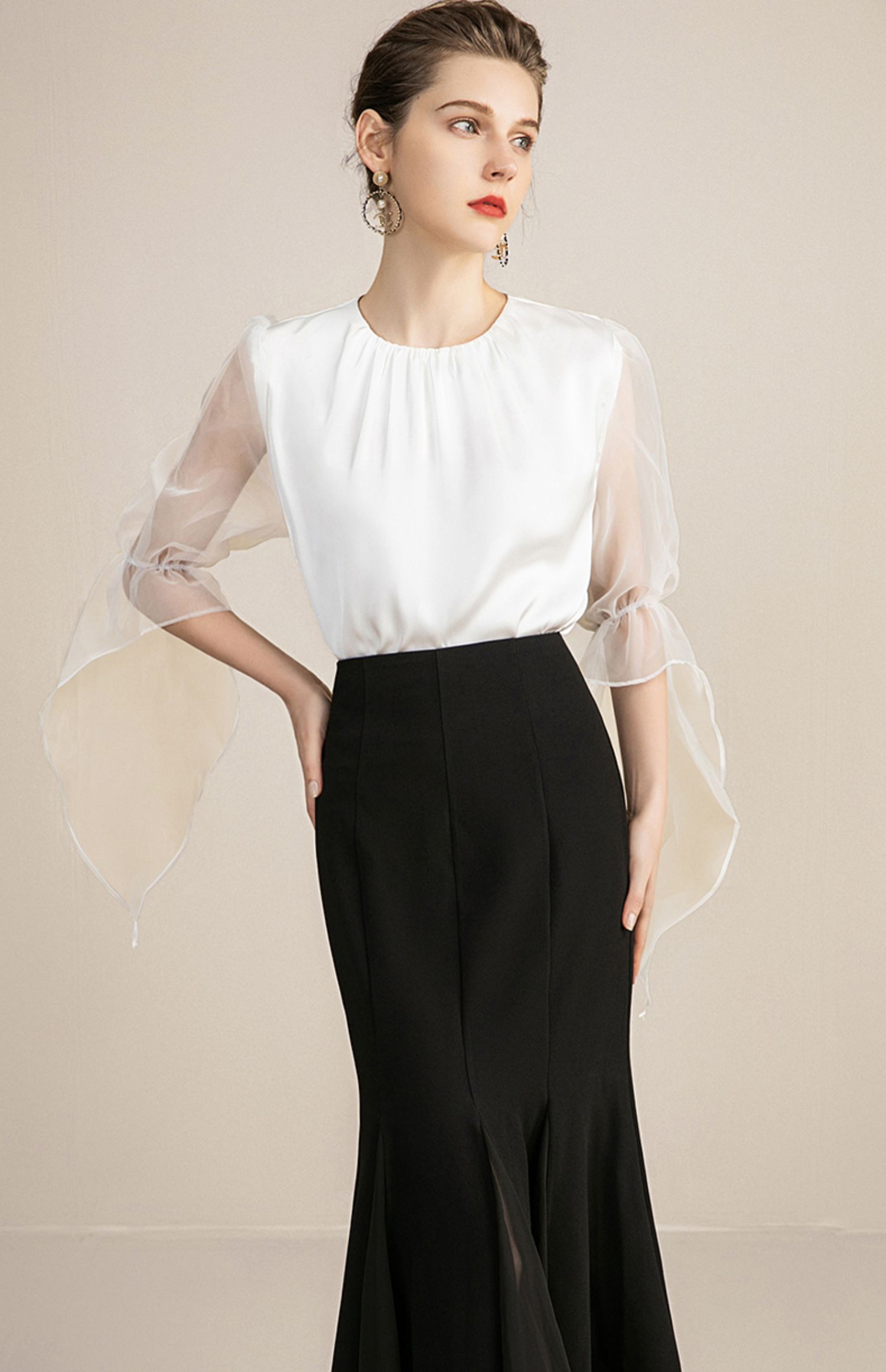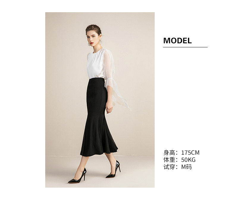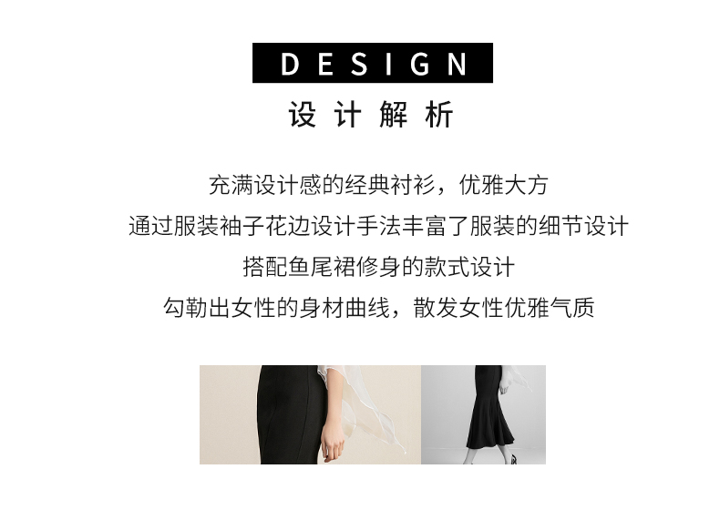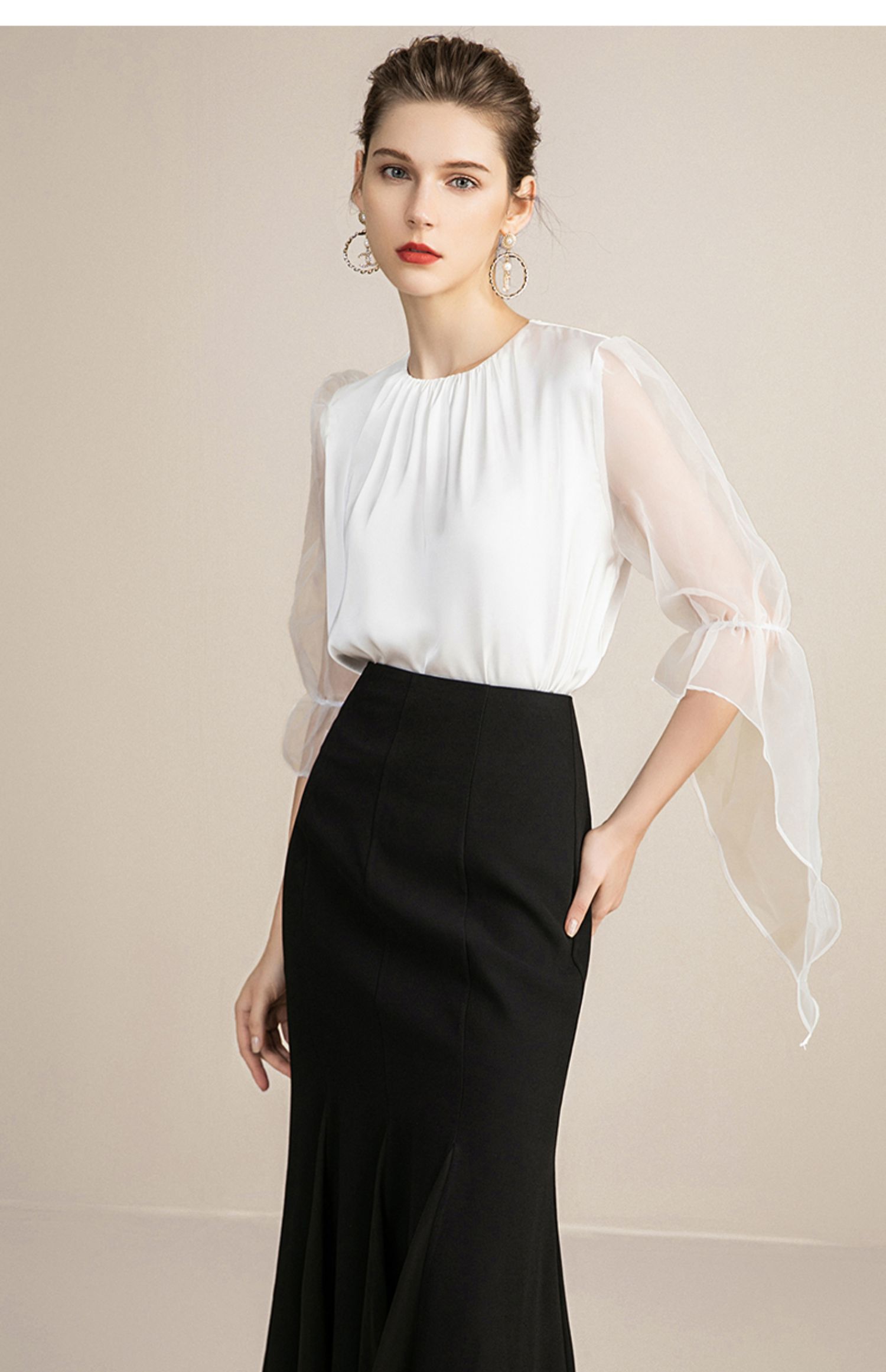 IWY/气质长袖拼接网纱衬衫套装女时尚名媛鱼尾裙套装女修身显瘦正装OL 213161B1+S3