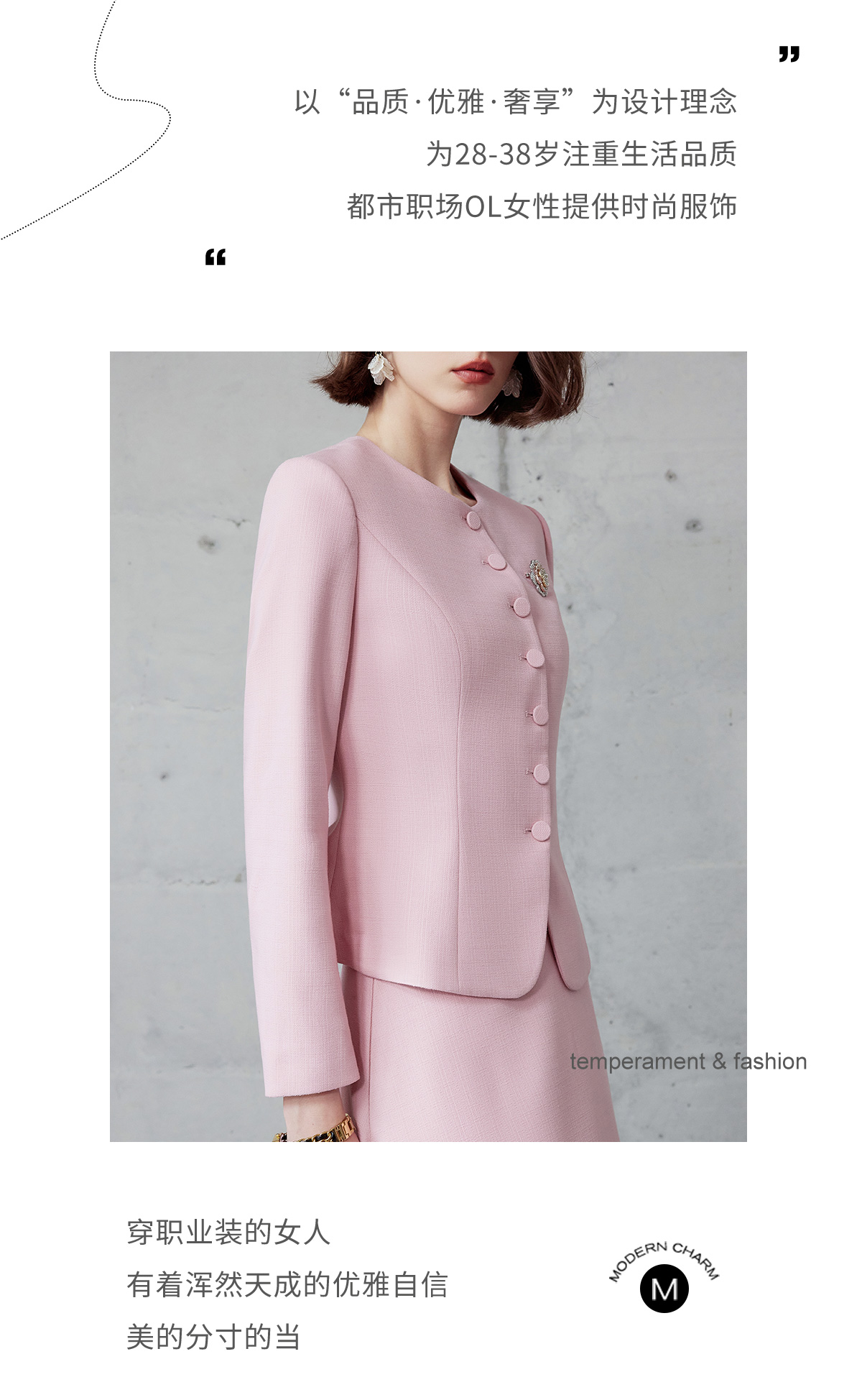 IWY/新中式轻国风套装长袖外套通勤粉色职业装洋气伞裙长裙C2040+S2102-P