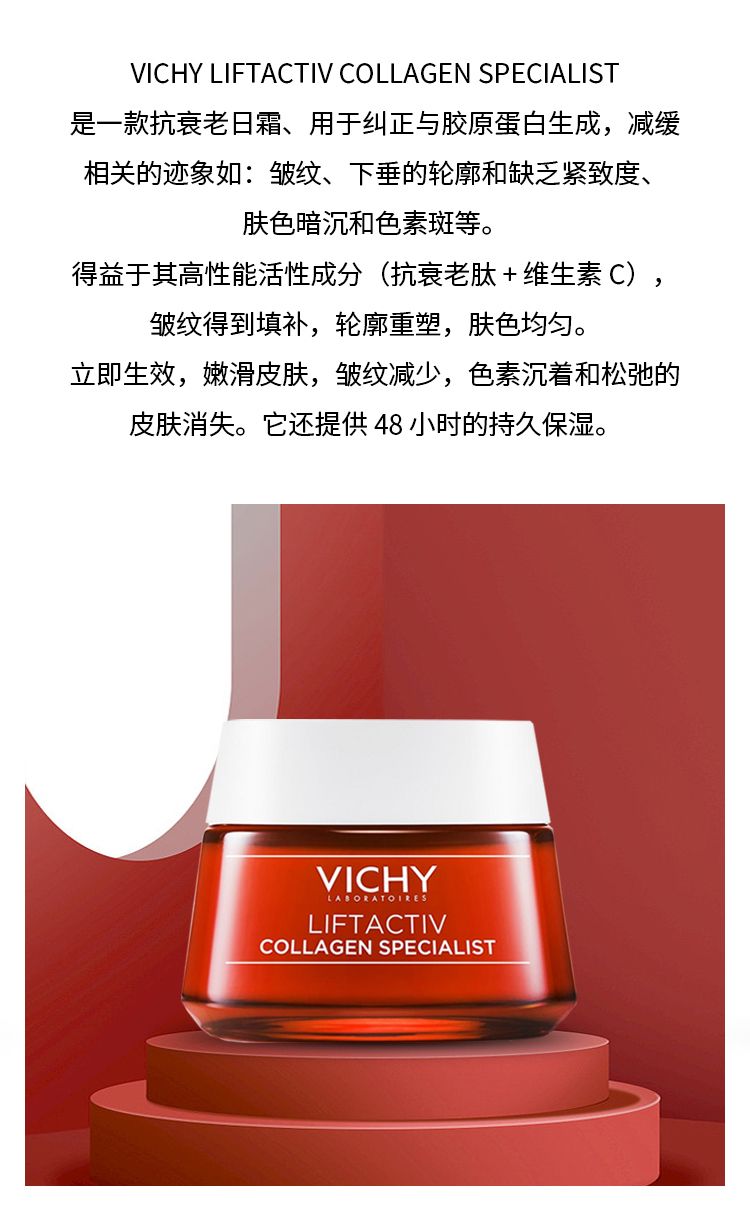 【预售 急单慎拍】Vichy薇姿 胶原蛋白含肽和维生素C保湿面霜 50ml
