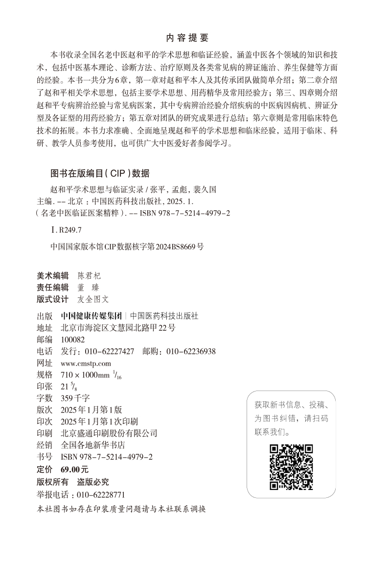 赵和平学术思想与临证实录 名老中医临证医案精粹 张平 等主编 适用于临床 科研 教学人员参考使用 也可供广大中医爱好者参阅学习